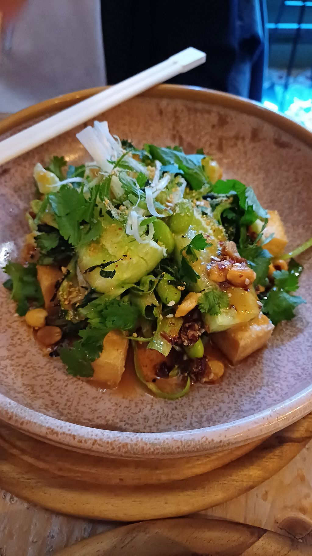 Special: Tofu and cucumber chilli peanut salad. Delicious