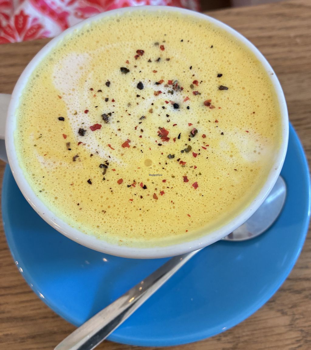 Read moreThe lentil soup was lightly spiced and served with toasted sourdough. The macaroni cheese was creamy and delicious. The wedges were spiced with harisa and were hot and perfect. The breakfast wrap was lovely. I enjoyed that it had roasted sweet potato inside and that it came with a side salad dressed with olive oil and pomegranate molasses. The caramel cheesecake was great with a chai latte. Everything vegan except for cows milk as an option for drinks. A very friendly and welcoming cafe with superb staff. Gets a bit busy at lunch time but the food is worth it.