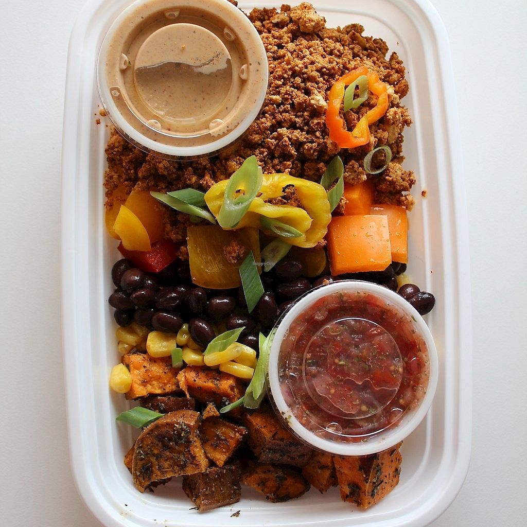 Serves meat, vegan options available. Health food restaurant offering a few vegan items such as coconut chickpea curry, tofu burrito bowl, tofu 'egg' roll bowl, tofu peanut bowl, chili bowl, chocolate almond macaroons, salted caramel dollies, cold oats, granola, energy balls, chickpea salads, tofu wraps and smoothies. Open Mon-Tue 11:00am-6:00pm, Sun 3:00pm-6:00pm.