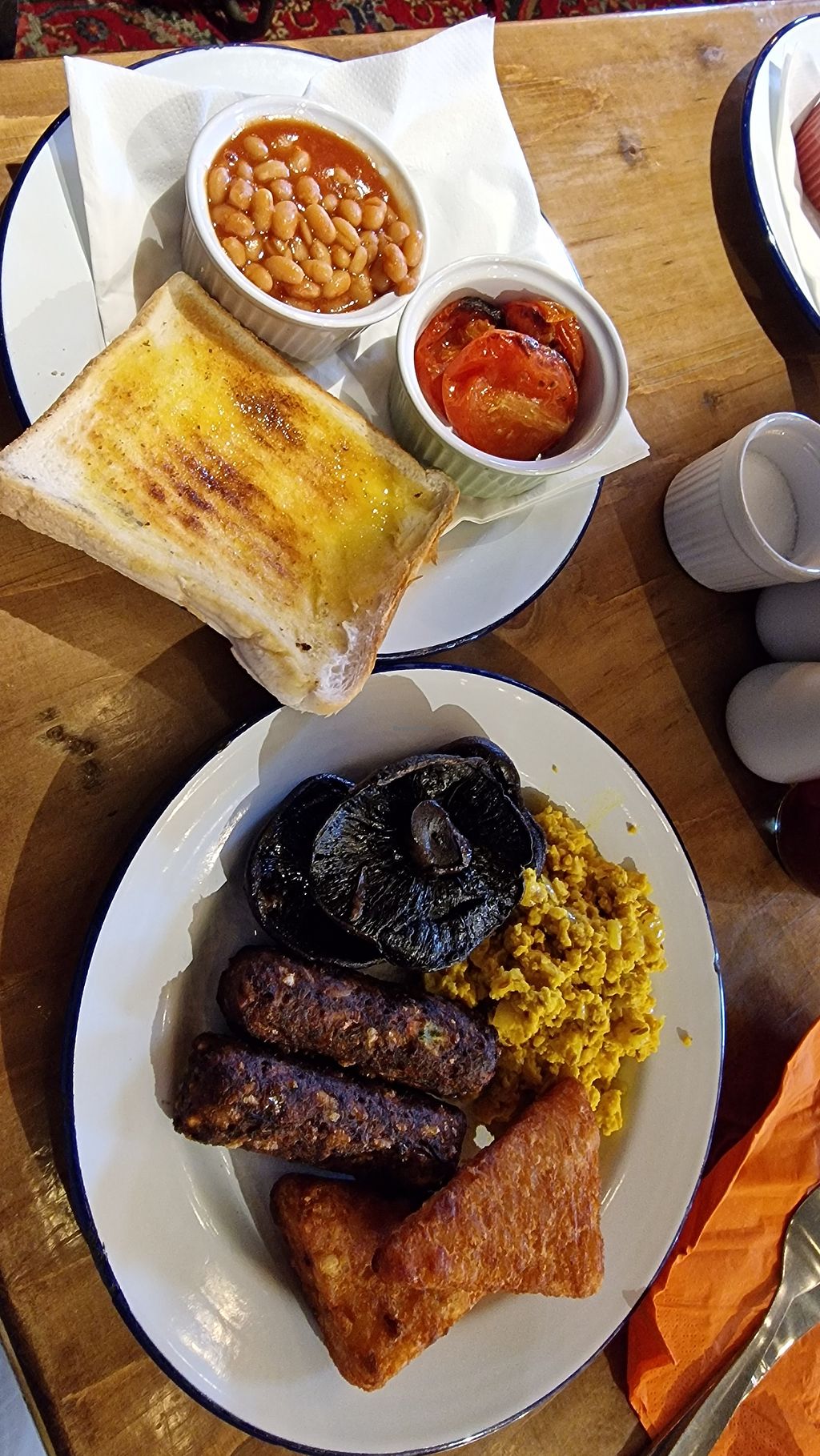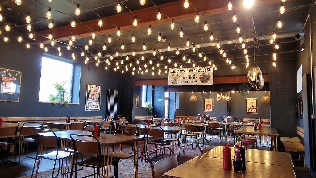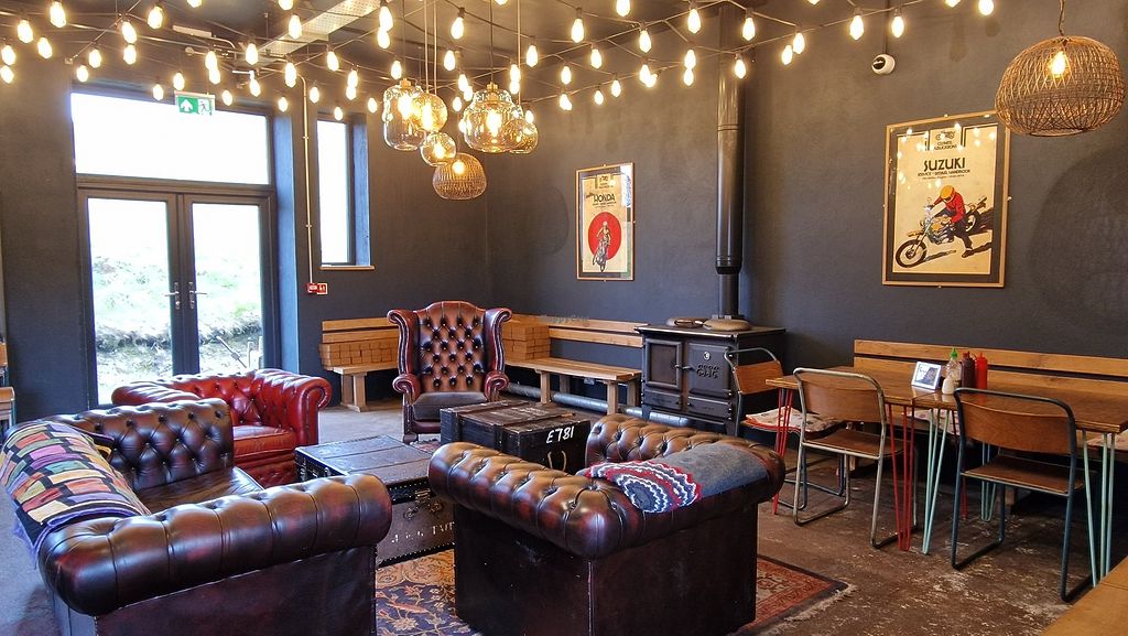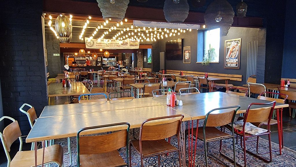 Serves meat, vegan options available. Cafe featuring a museum dedicated to the mountain section of the TT course, with bikes, a small cinema showing TT highlights, and memorabilia. Vegan options include a full vegan breakfast with vegan scramble, mushrooms, vegan sausages, baked beans, tomatoes, hash browns, and toast, as well as oat milk for coffee and tea. Other vegan dishes include chickpea, spinach, and creamy coconut curry sauce pie, soup of the day, vegan BLT sandwich, and no shepherds lentil pie. Open Mon 9:30am-4:30pm, Wed 9:30am-4:30am, Thu-Sun 9:30am-4:30pm. Closed Mon & Tue.