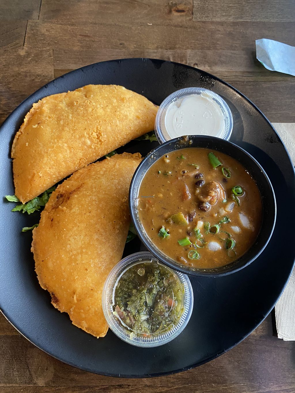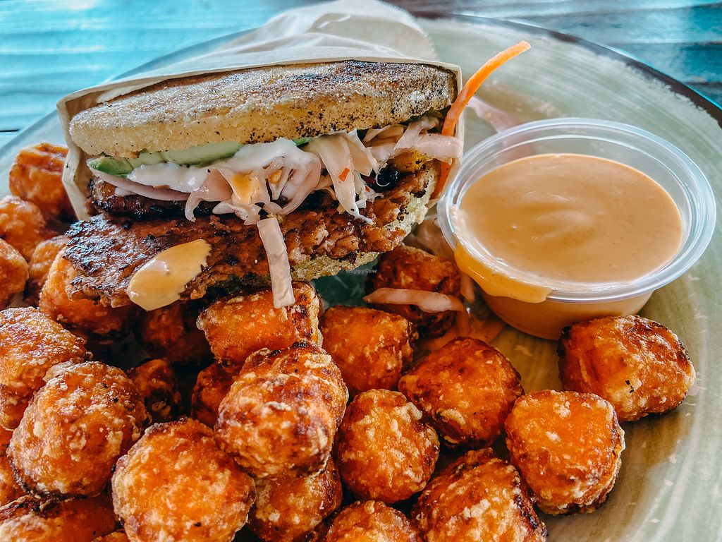 Read moreI called to place an order because I had questions - first time I was placed on hold and hung up after 10 mins of waiting. Called again, no answer. Called a third time and someone finally picked up. The girl I spoke to was very nice and took time to list out options for me. Unfortunately I was told my first desired option of brunch purepa no longer comes with the scrambled tofu so I got the burger arepa instead. Good thing I called because the online ordering system doesn't reflect this. I was told food would be ready in 10 - nice and quick! When I arrived I was told pickle fries were not available so I had to pick a new side. I chose regular fries .. but wasn't refunded the $3 upcharge for the unavailable pickle fries. I picked out some baked goodies (the case was full of delicious options), showed my free ice cream scoop check-in offer, and my order was rung up. Easy peasy.