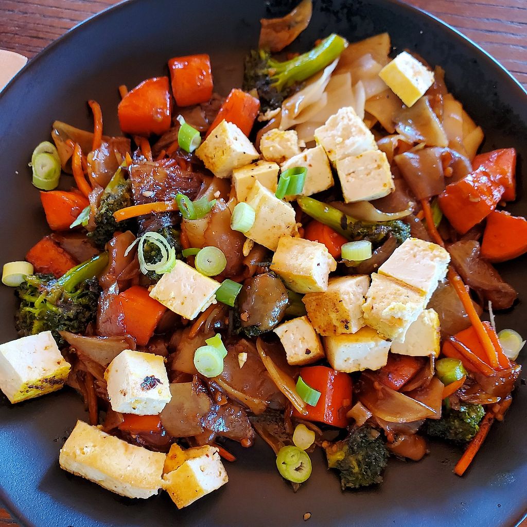 Enjoyed our lunch. Dishes were quite tasty. Ordered Pad See Wei noodles with tofu. Quite yummy. Husband had Thai Curry with Tofu which I was unsuccessful to trade for. Next time, I'm getting the curry. Amazing flavor. Lots of seating inside and on patio. Clean restrooms. Polite and helpful staff.