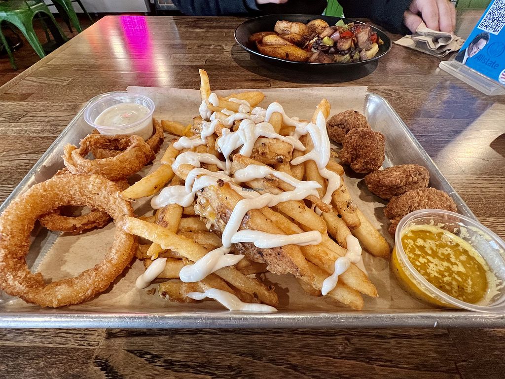 I love this place. Im the only one vegan in my family. I have brought most my family members here and all like food and drinks. There is a creamery inside, they also have fresh juices. They have a huge variety of options. They also have a bakery, they have cookies, brownies, breads, cheese cake. Everytime a family member has a birthday I by them a vegan cheesecake, they all love it. You can also order birthday cakes, they do have specials on holidays also. I love that they have a rewards program. Friendly environment, great customer service. Best happy hour. Sometimes they have bands or DJ's. Its family friendly. They also have daily specials and bunch. They try and take you on a trip around the world with diverse cuisine options. Love this place. Wish they posted the daily specials on website. Also wish on the IG that they pinned the different menue options. They have a sushi day, a BBQ day, an Italian day and others. They do it at special time of day. Great vibes if you eat alone or with family. It is a Restaurant / Juciery / Bakery / Creamery , so if you not vegan and want to get something for a vegan, safest Best place to find a amazing option.