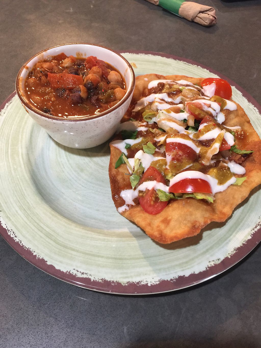 I’ve found it hard to find vegan Latin dishes with all the trimmings (like vegan sour cream) prior to coming to Bakersfield, so I was excited to go here. The Mexican chocolate, which I got with oat milk, was delicious and comforting. I tried the Native taco because I’d never had fry bread before. It was tasty, and it was huge! The French fries and mac’n’cheese my mom and I got as sides were so-so in our opinion. The atmosphere is nice with Latin music playing in the background. Will definitely be coming back to try more of their menu.