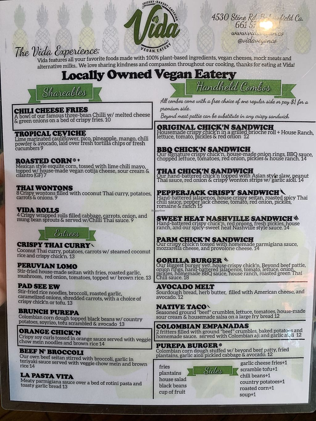 Vida Vegan was a great dinning spot while visiting Bakersfield. It had a great hangout atmosphere and delicious food and drink options. The horchata is the best vegan horchata I have tasted thus far. I highly recommend giving Vida Vegan a try!