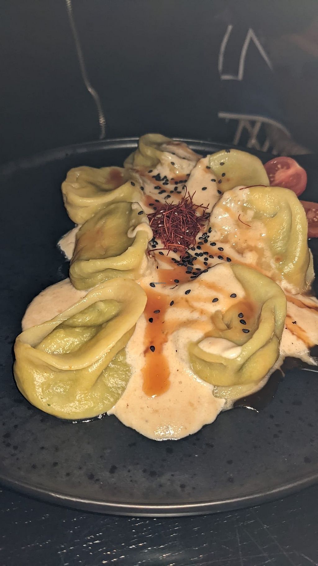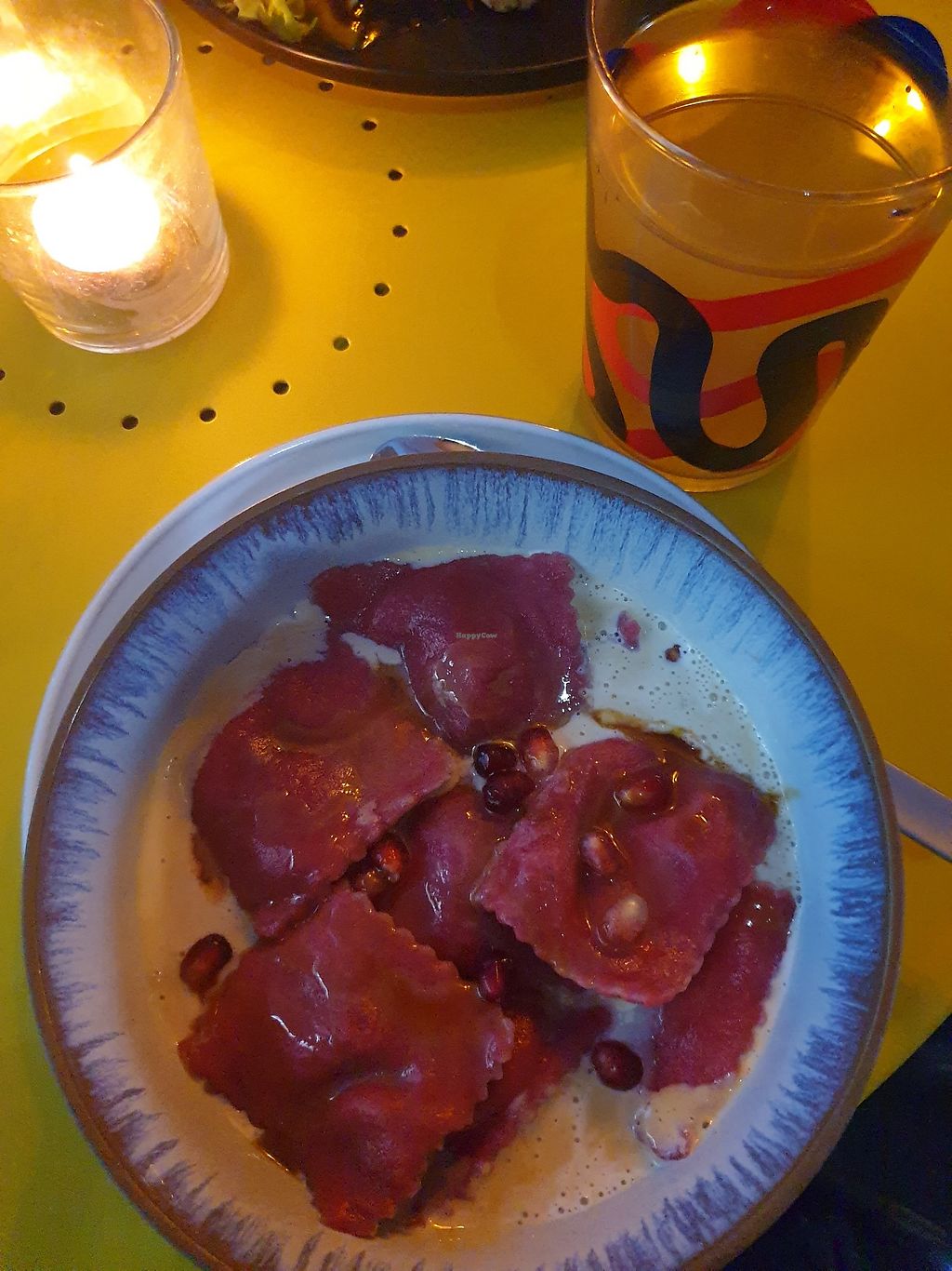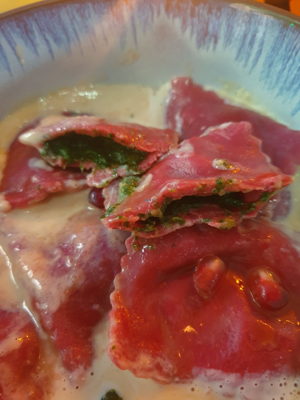I had the spinach "feta" ravioli. They came with a creamy sauce and pomegranate on top.