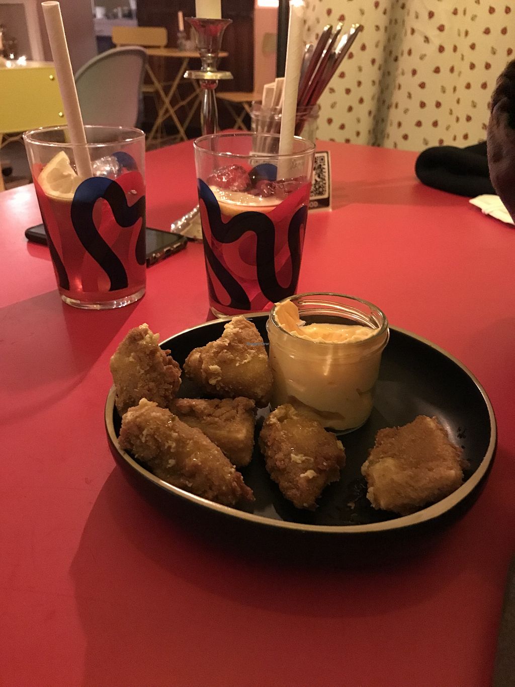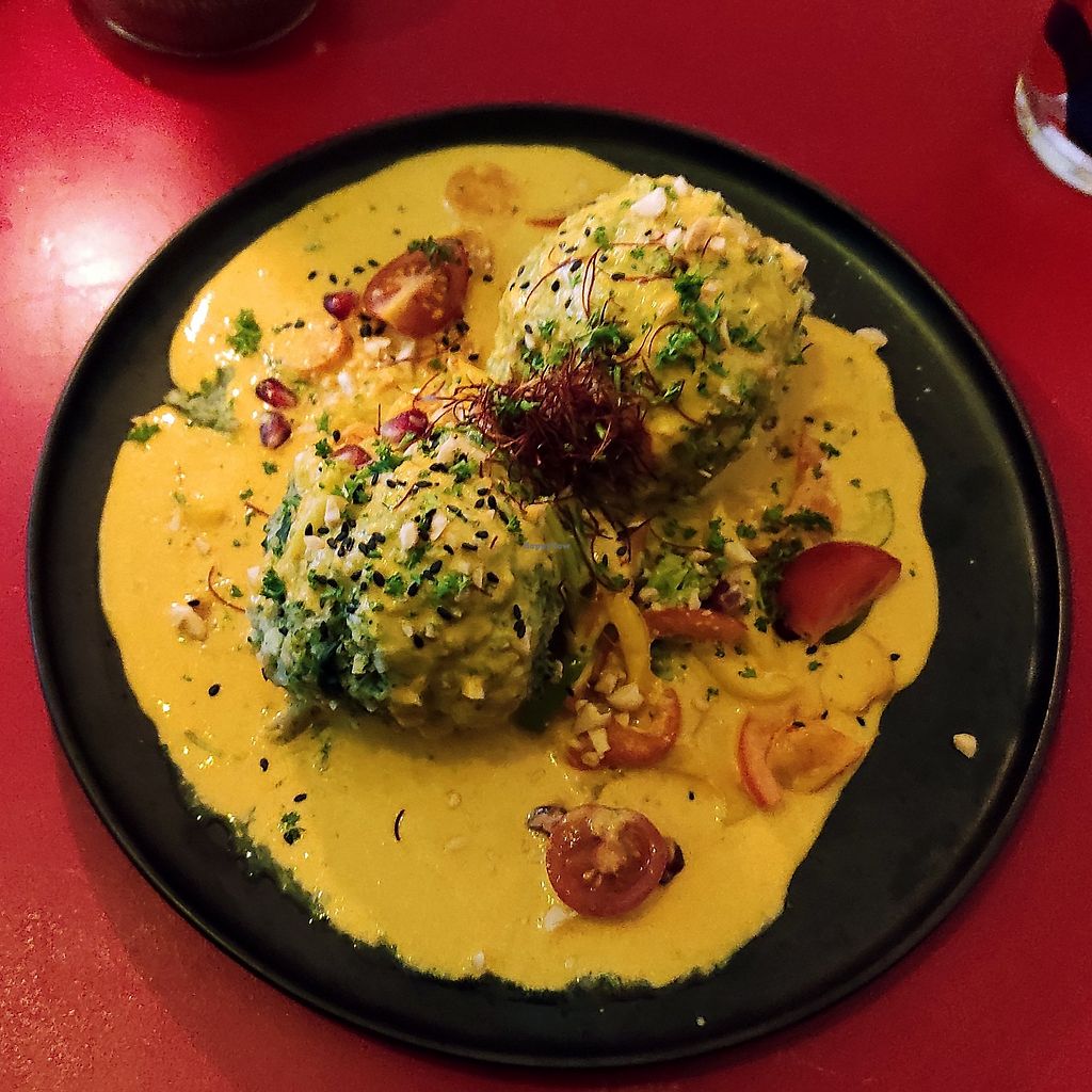 An all-vegan bar/restaurant with unusual and varied dishes such as feta spinach ravioli with caramel sauce, matcha waffles with ice cream, chili cheese nuggets, spinach dumplings with peanut curry and much more. Reported closed August 2024.