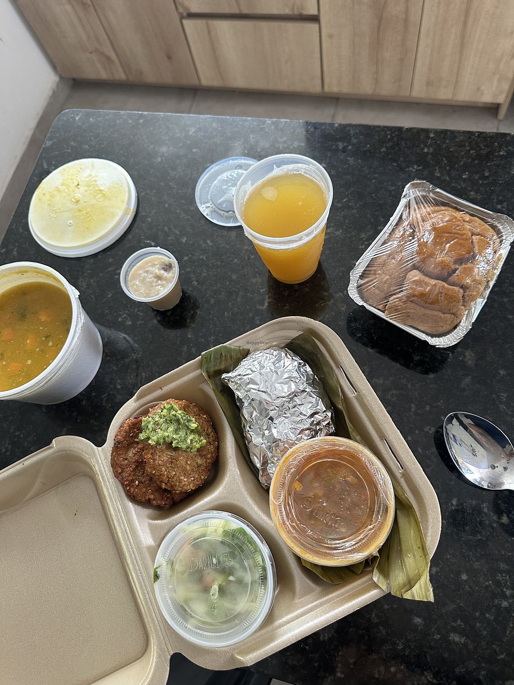 Read moreAs of August 2024 the meal of the day costs 17,000 pesos. Today's meal came with a bowl of soup, a glass of juice, a tiny dessert, and the main plate with four items: rice, the ubiquitous lentil patty, a salad, and a vegetable mixture in a taco shell.
