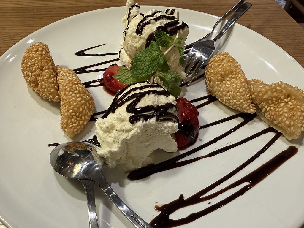 Fluffy Sesame Balls with Vanilla Ice Cream π¨ Strawberries π and Chocolβ¦