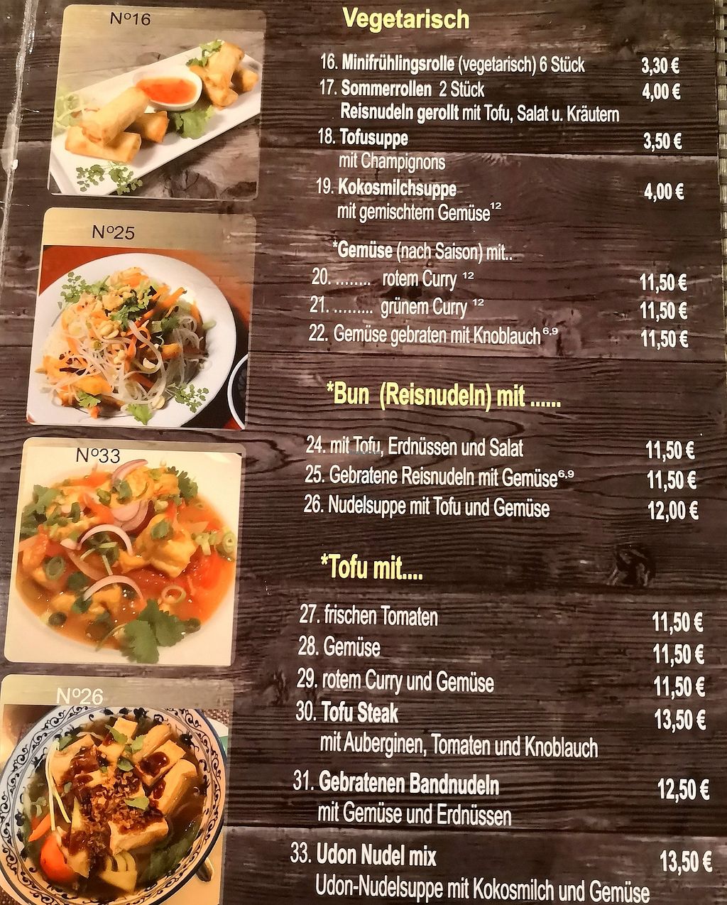 Ich hatte die Sommerrollen mit Tofu und Frühlingsrollen. Lt Bedienung beides vegan. Ich werde mit größerem Hunger wieder kommen um die anderen Gerichte zu testen.