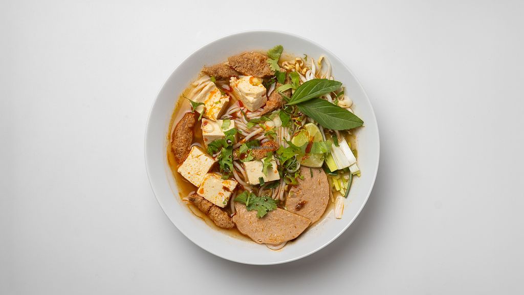 Hu tieu noodles with slow-simmered vegetables broth, homemade tofu and…