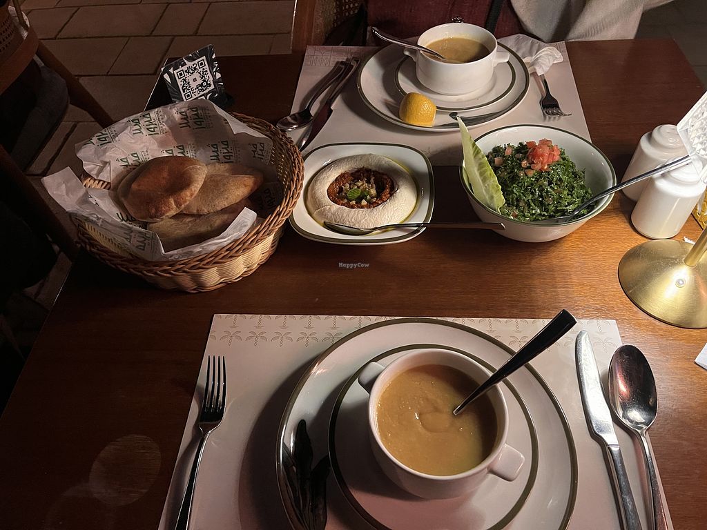 Serves meat, vegan options available. Lively Lebanese restaurant. Vegan choices may include hummus, falafel, tabbouleh, babaganoush, lentil soup, spinach pie, pita bread, salads, baked potatoes, grape leaves, rice, fries. Vegans please inquire as suitable dishes are not clearly labeled. Open Mon-Sun 12:00pm-1:00am.