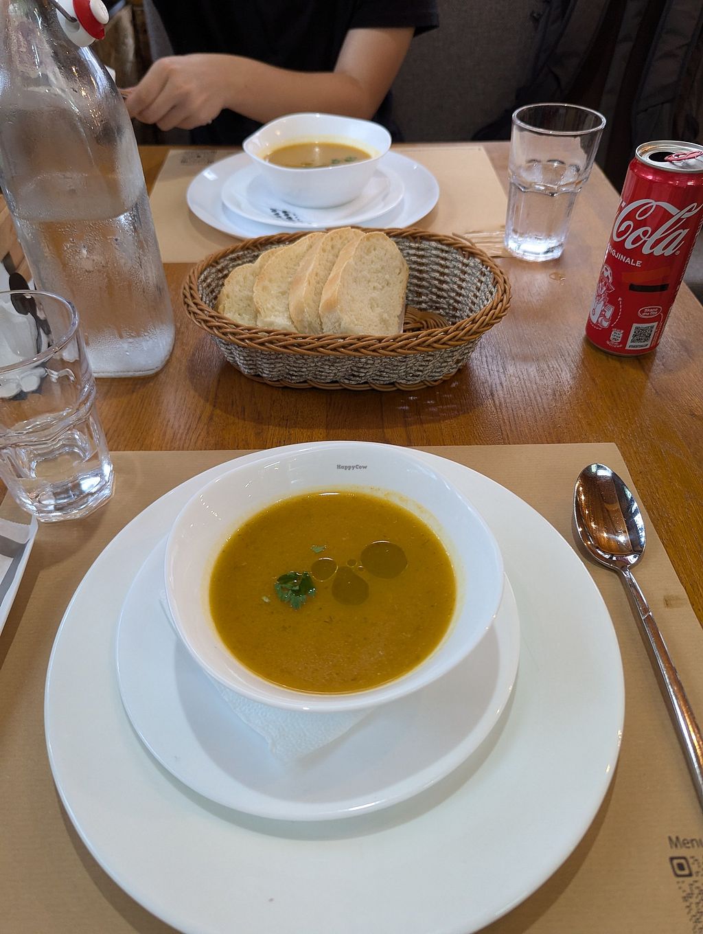 Really cute place, really lovely staff, delicious food. Complimentary water and bread and the drinks are cheap too. And there are are a small family of friendly cats hanging around to cuddle after you eat!