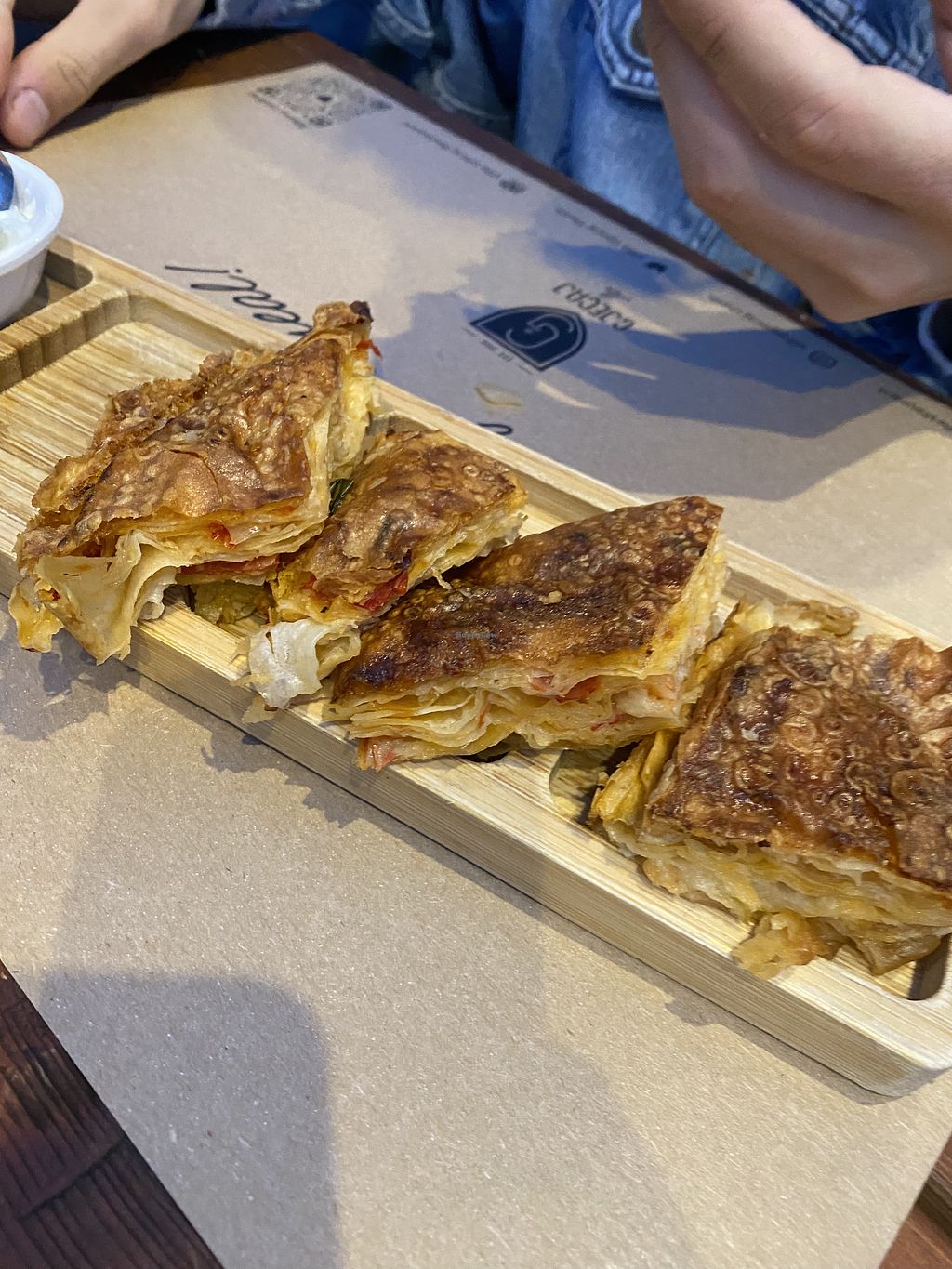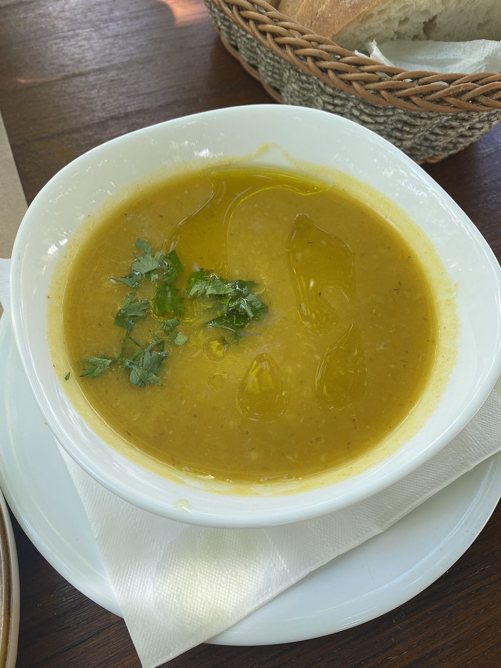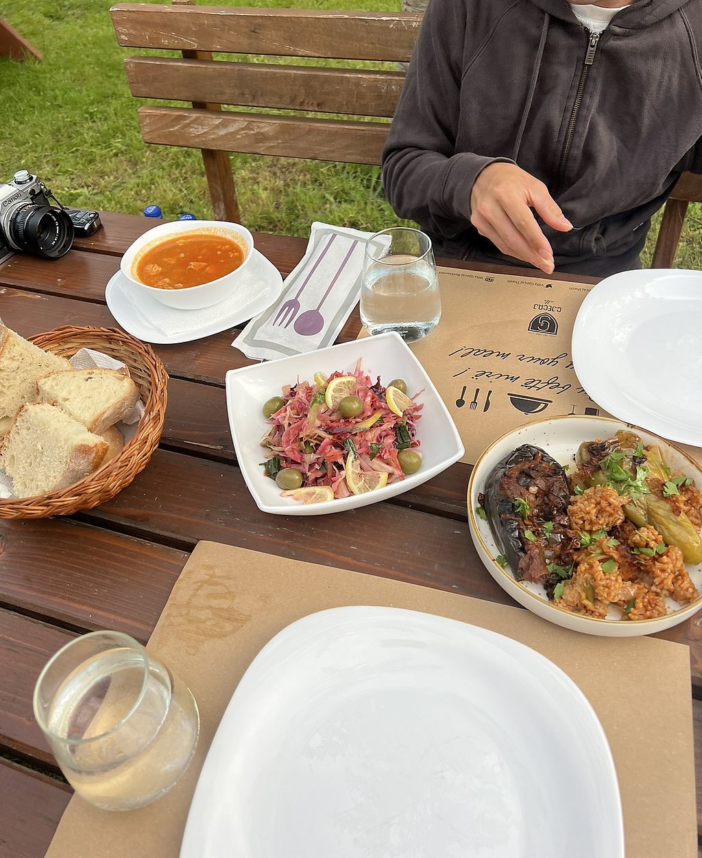 Our dinner was amazing! The seating outside was lovely. Got the stuffed eggplant and capsicum (the waitress offered half and half instead of just one of them), as well as a cabbage salad which was a special of the day. The free bread was great too!