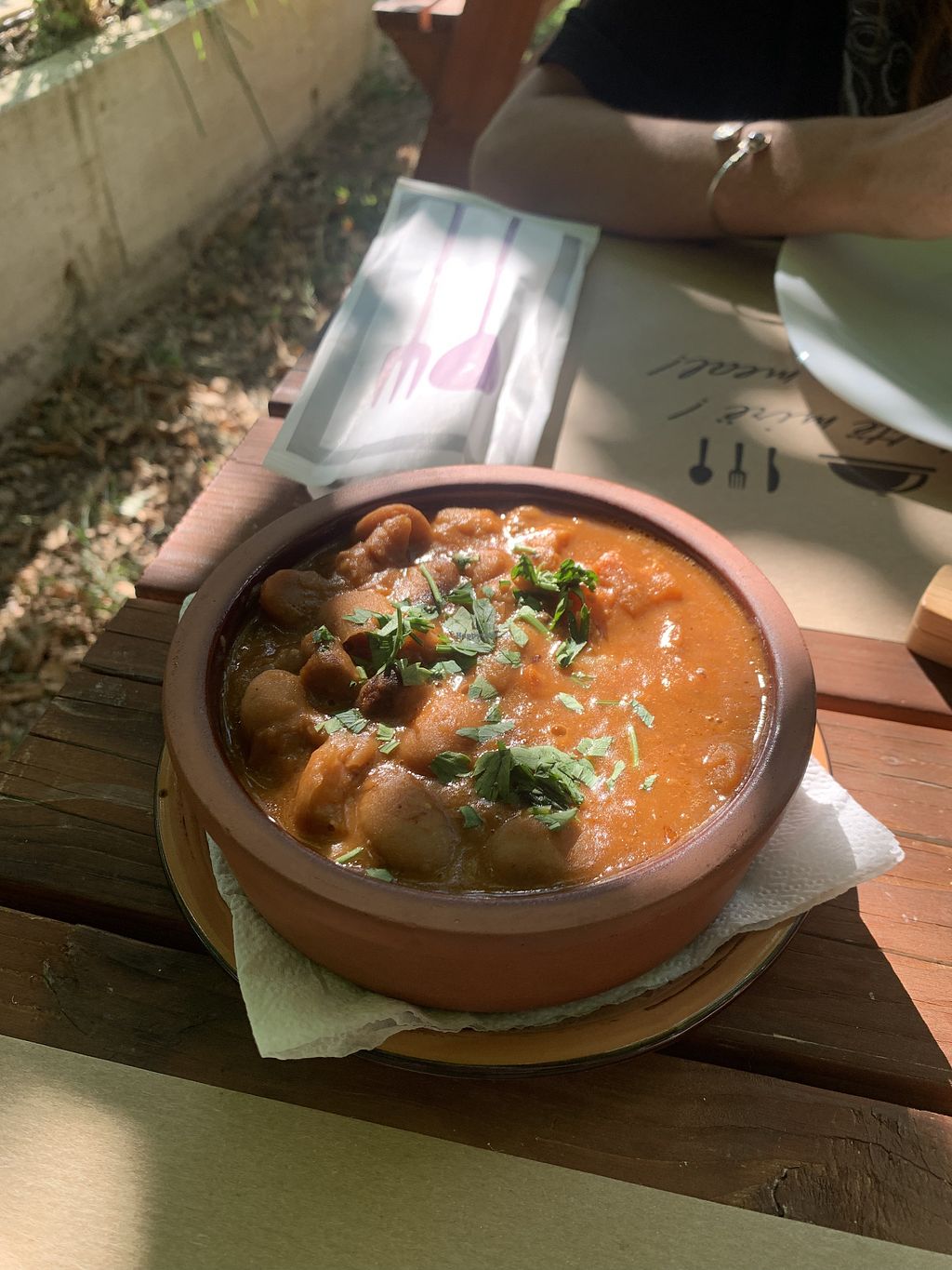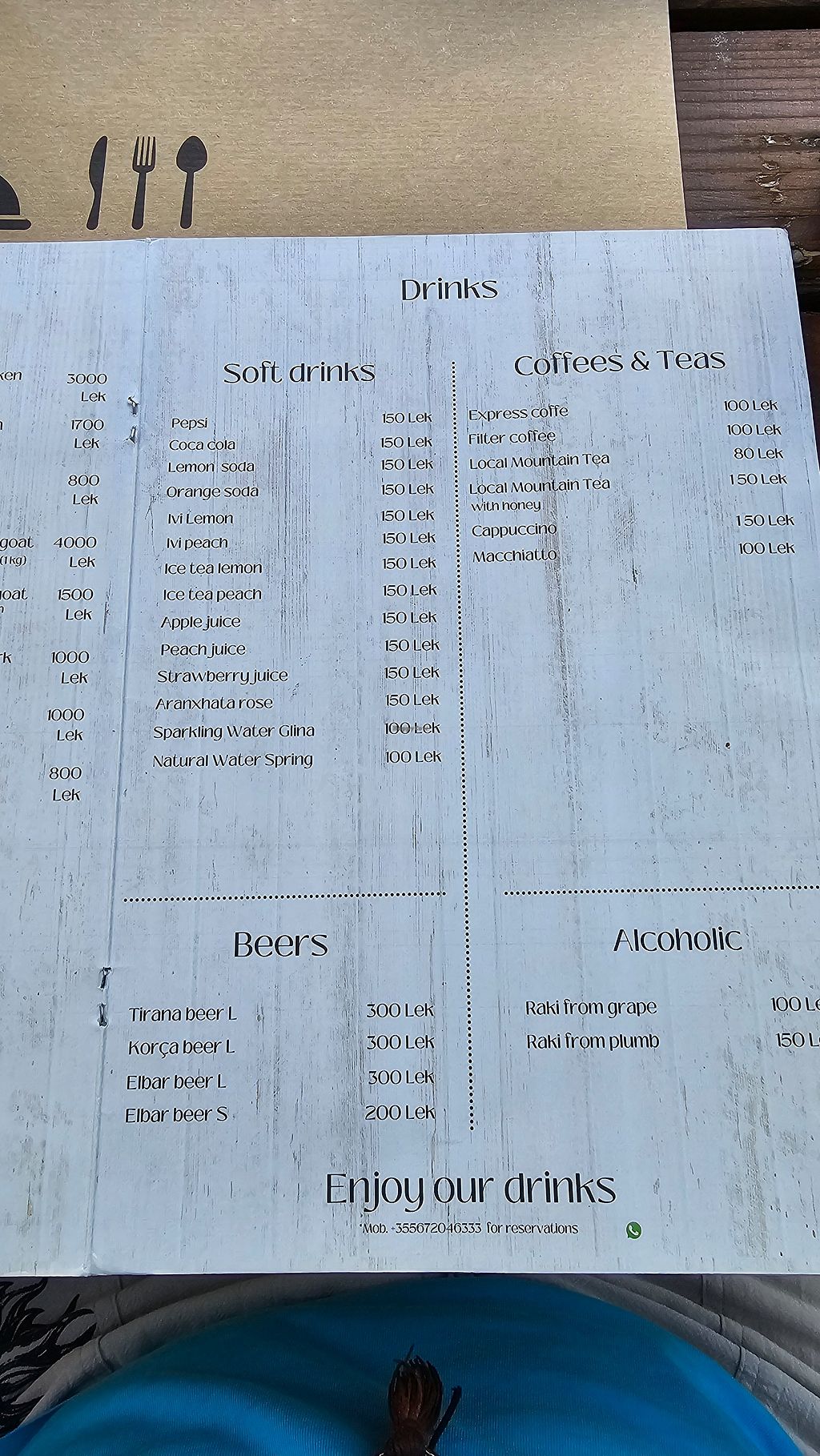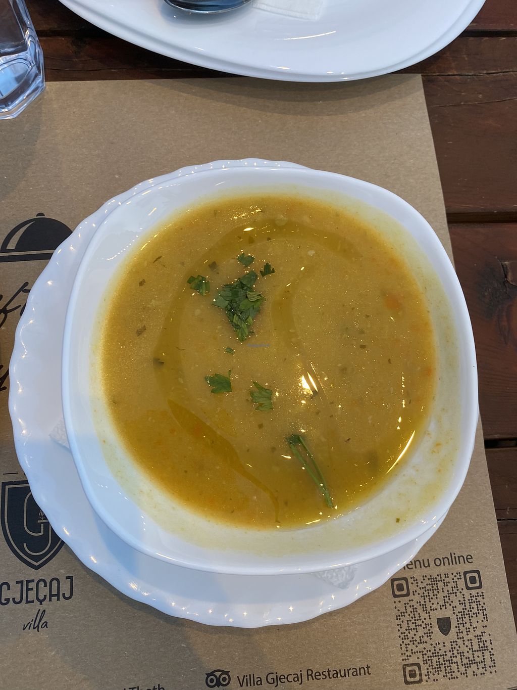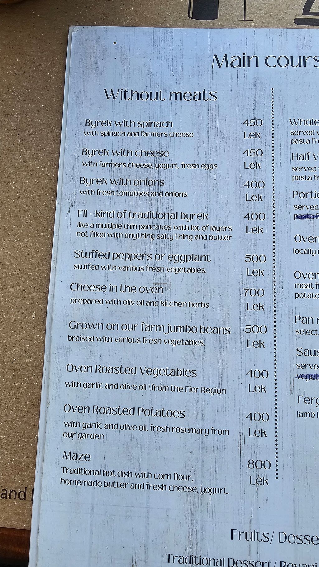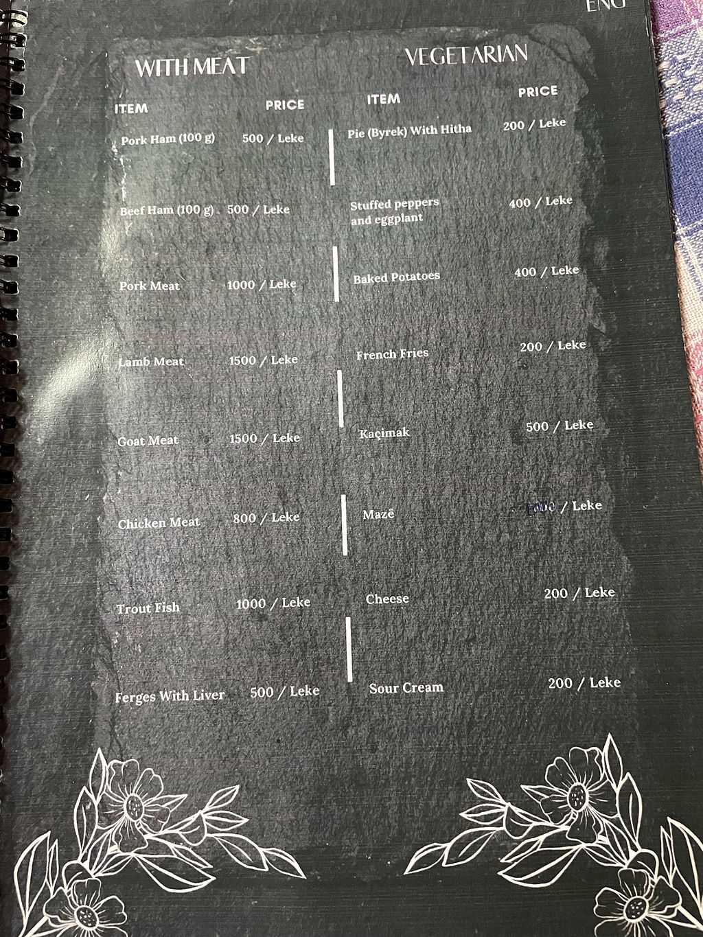 Reasonably priced compared to other restaurants in Theth city center. I got the beans (truly so delicious, I wish I could get the recipe to make at home), the soup which was pretty decent, and bread with olive oil to dip comes with the meal. Good portions, I was full with the soup and beans. They also had stuffed peppers or eggplant that sounded good and could make a vegan salad. Staff is very friendly and the seating area is absolutely beautiful!!