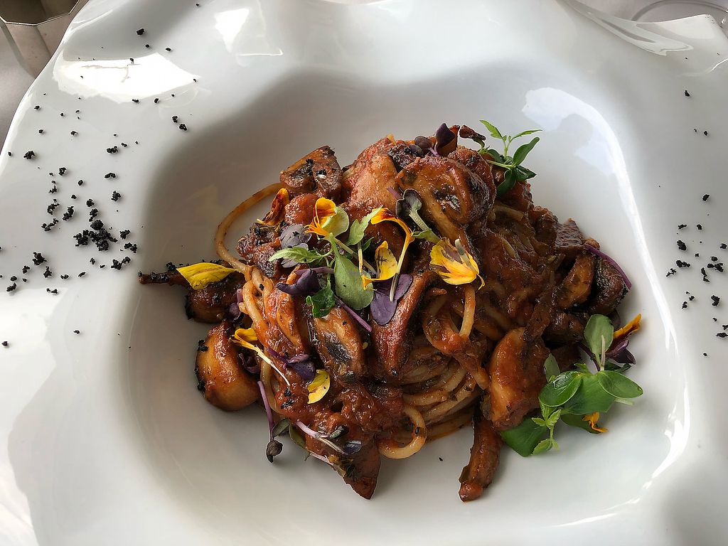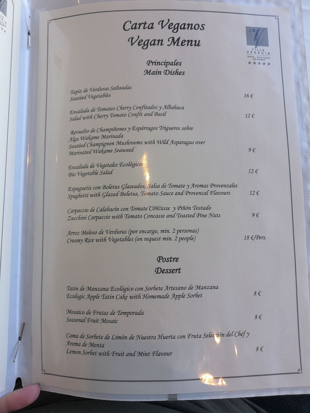 5* place. Gorgeous view over Levante Beach. There was a slight wait for food so we were given a complimentary vegan starter as well as bread & tge freshest olive oil. Main meal didn't disappoint. Lovely menu choice of mains and dessert, vegan wines too!