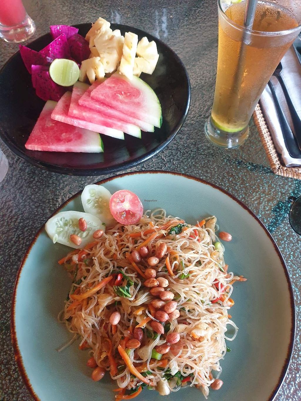 They have a vegetarian menu with clearly labeled vegan items. But it’s a little confusing. For instance, it says the “vegetarian tasting plate” is vegan and contains spring rolls. But the spring rolls on the menu by themselves aren’t labeled vegan. And unfortunately the staff didn’t understand English enough to clarify for us, so we skipped those items.