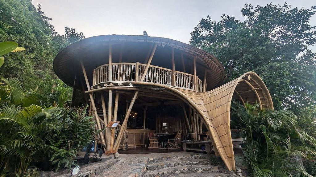 The bamboo architecture was beautiful and the food was good especially the creamy tofu scramble and the springrolls which came with a delicious salad (cabbage, peanuts, cucumber).