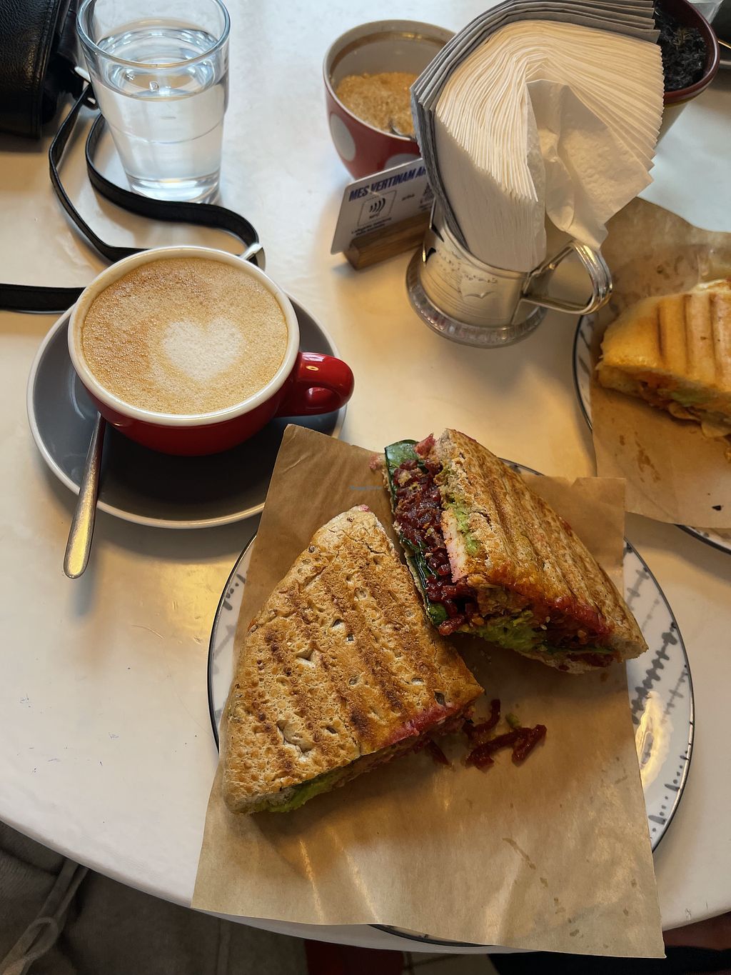 Read moreHad a cappuccino with coconut milk and hot sandwich with vegan cheese and mushrooms.
