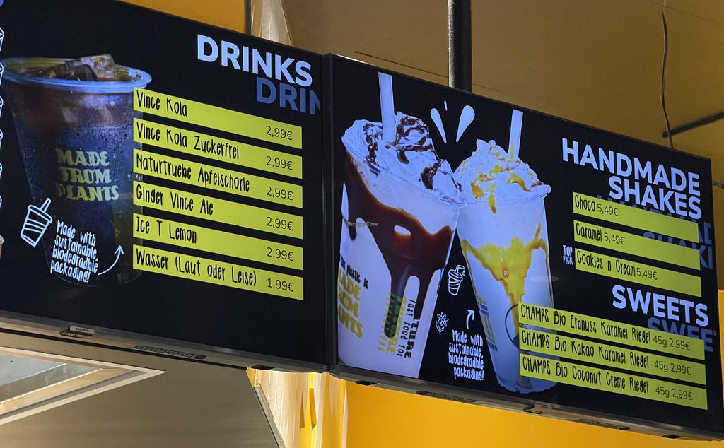 Completely vegan fast food chain in 'The Playce' at Potsdamer Platz. The store is located at the basement level (-1).