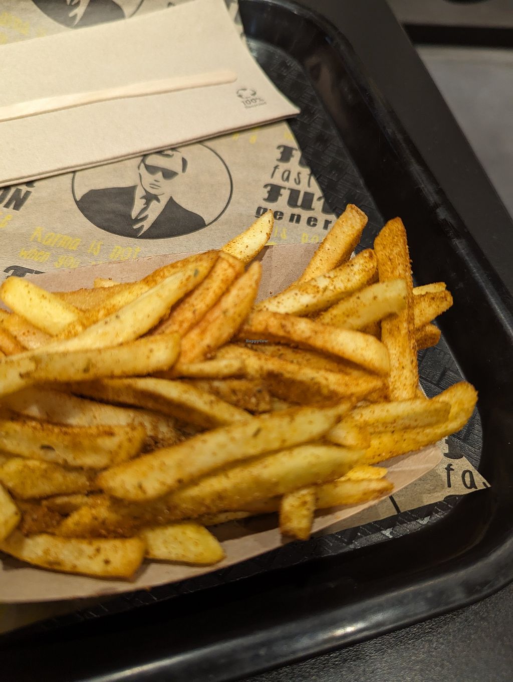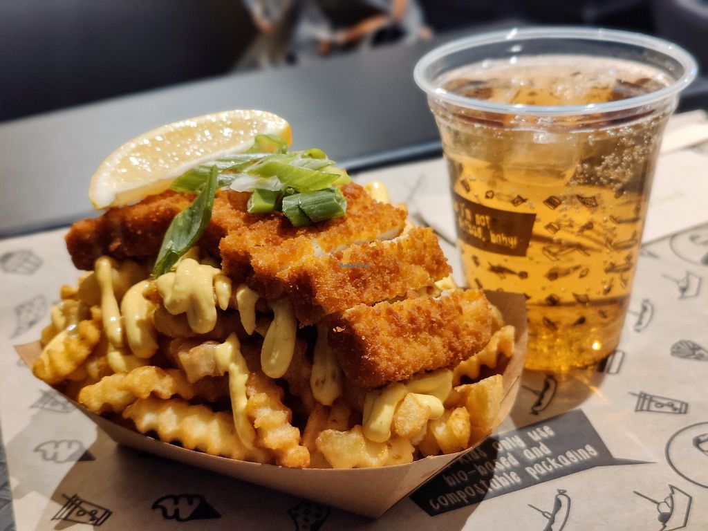 Vegan fast food chain offering burgers, fries, fish & chips, kebab fries, milkshakes, nuggets, and ice cream. Self-service terminals are available. Accepts card payments only. Reported closed August 2024.