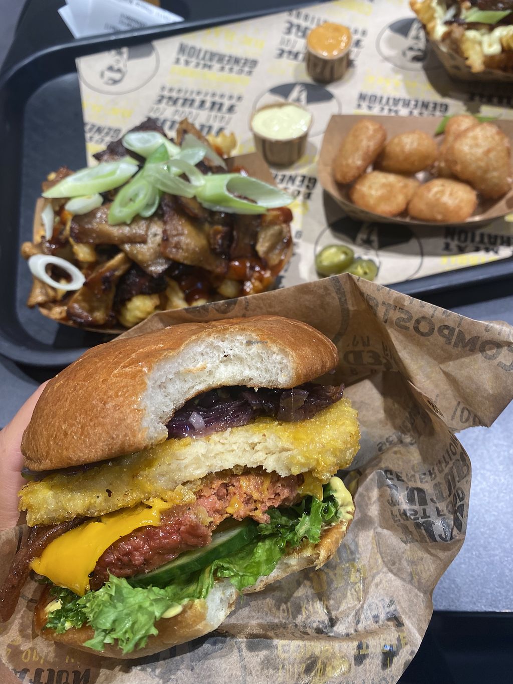 I was able to try the big veganski, double vegan meat with vegan cheese and fries with Cajun spices.