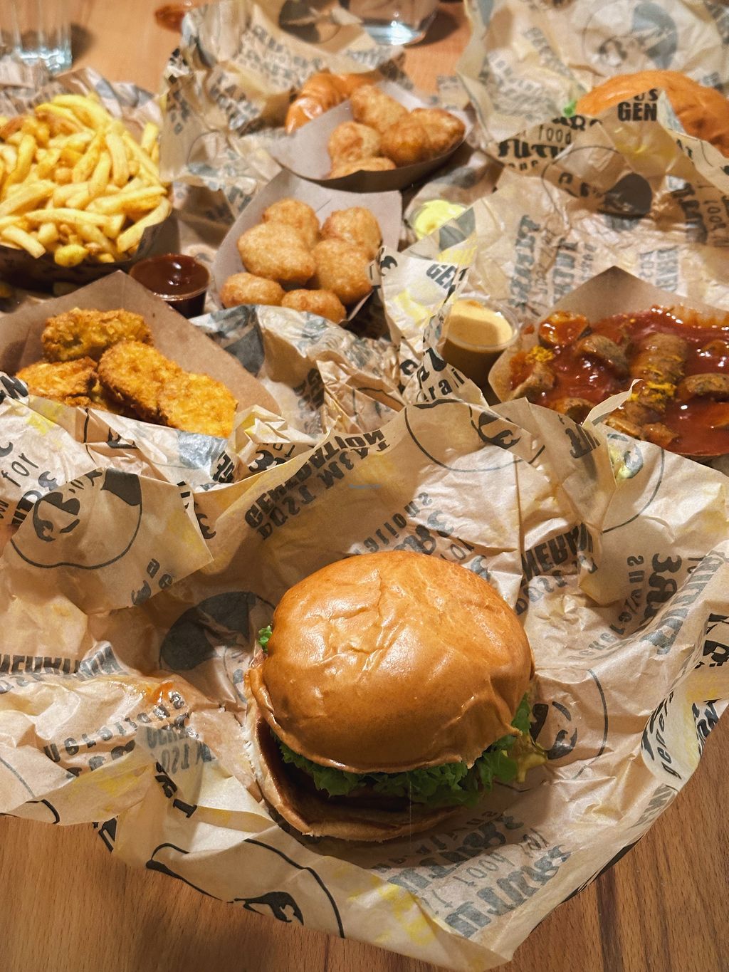 Schmeckt alles super. Fand vor allem die vegane Currywurst geil. Preise find ich aber zu hoch. Für einen mittelgroßen Burger über 10€ ohne Beilagen ist happig.