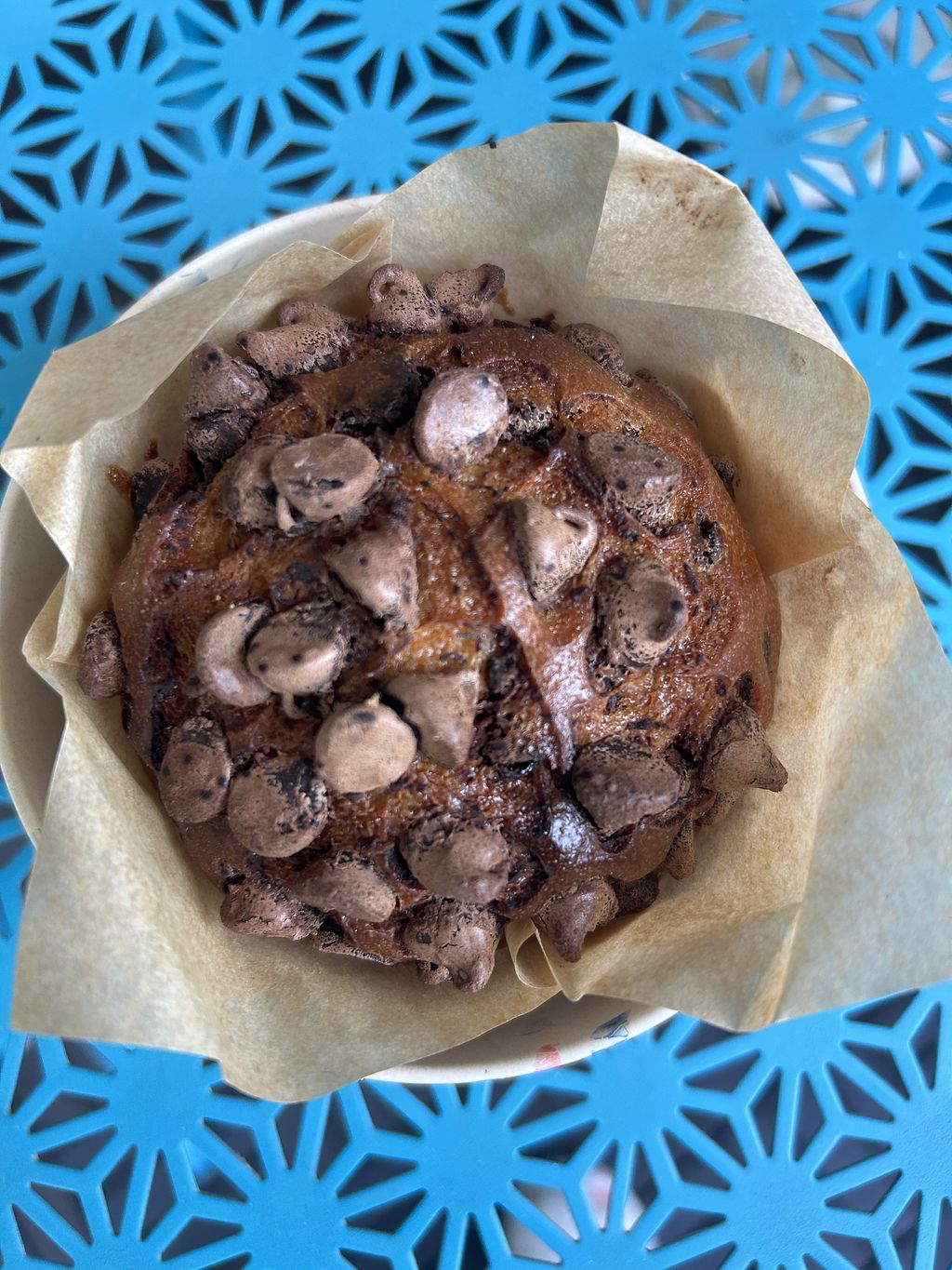 The whole place is vegan! The empanada was very flavourful with a great spicy sauce on the side. Delicious soft chocolate chip cookie as well. Espresso also great! Pretty space and nice staff.