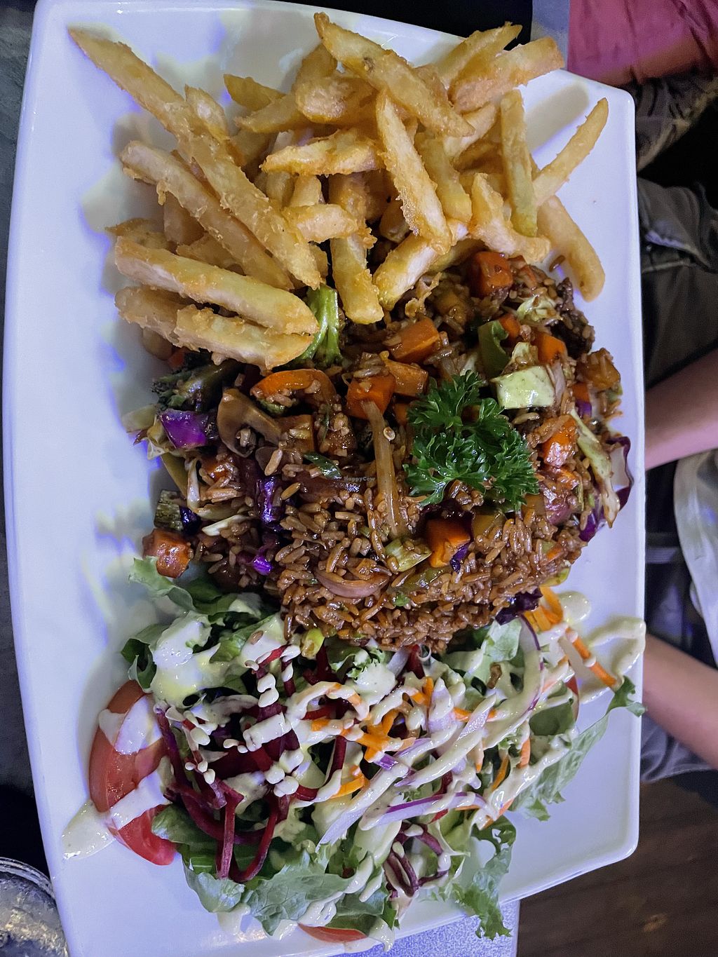 They call it "Asian Rice," and it's veggies and nuts in a very sweet t…