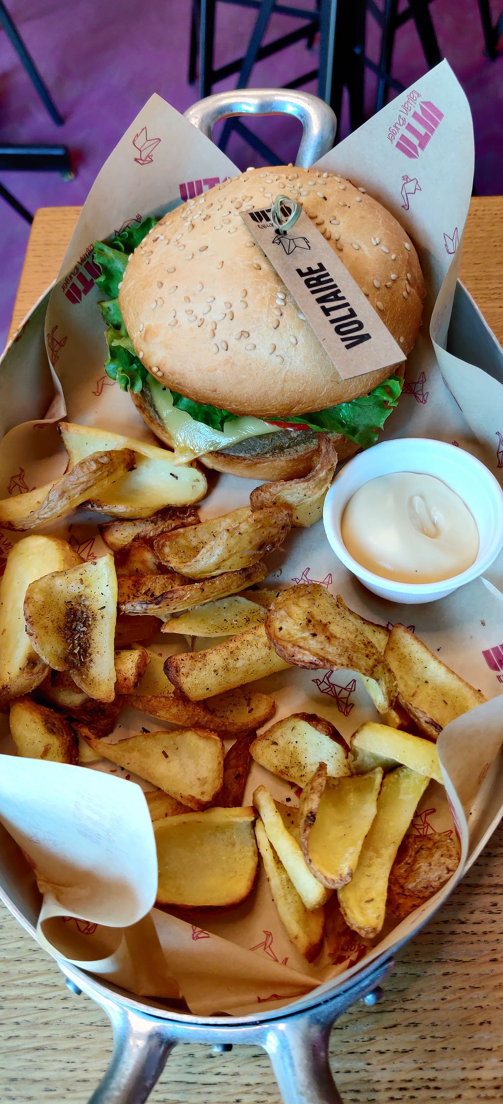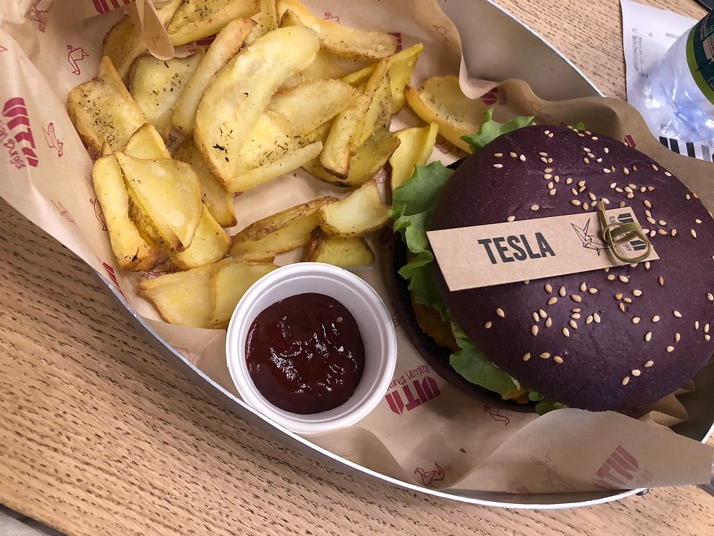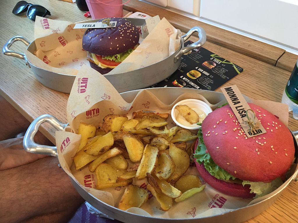I had Van Gogh and Wtf?! Einstein and some chips. The burgers where tasty and interesting but the buns were a bit dry and tasteless. Fries were a bit dry as well and I didn't really enjoy them that much.