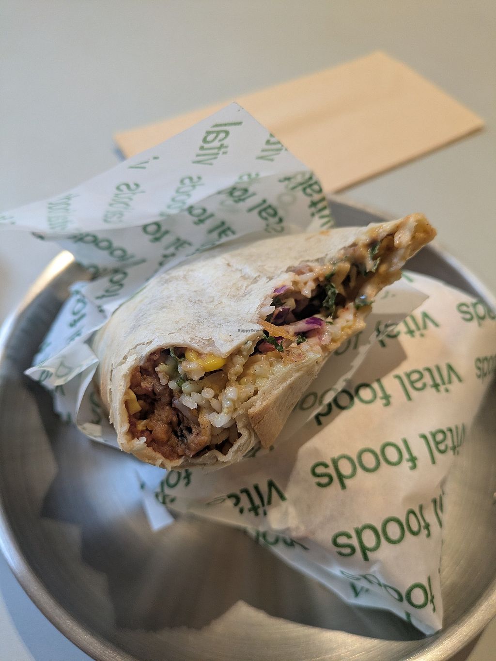 I had the black bean and sweet potato burrito and it was very tasty. I enjoyed it and it was a good portion size and filling. It was also reasonably priced.