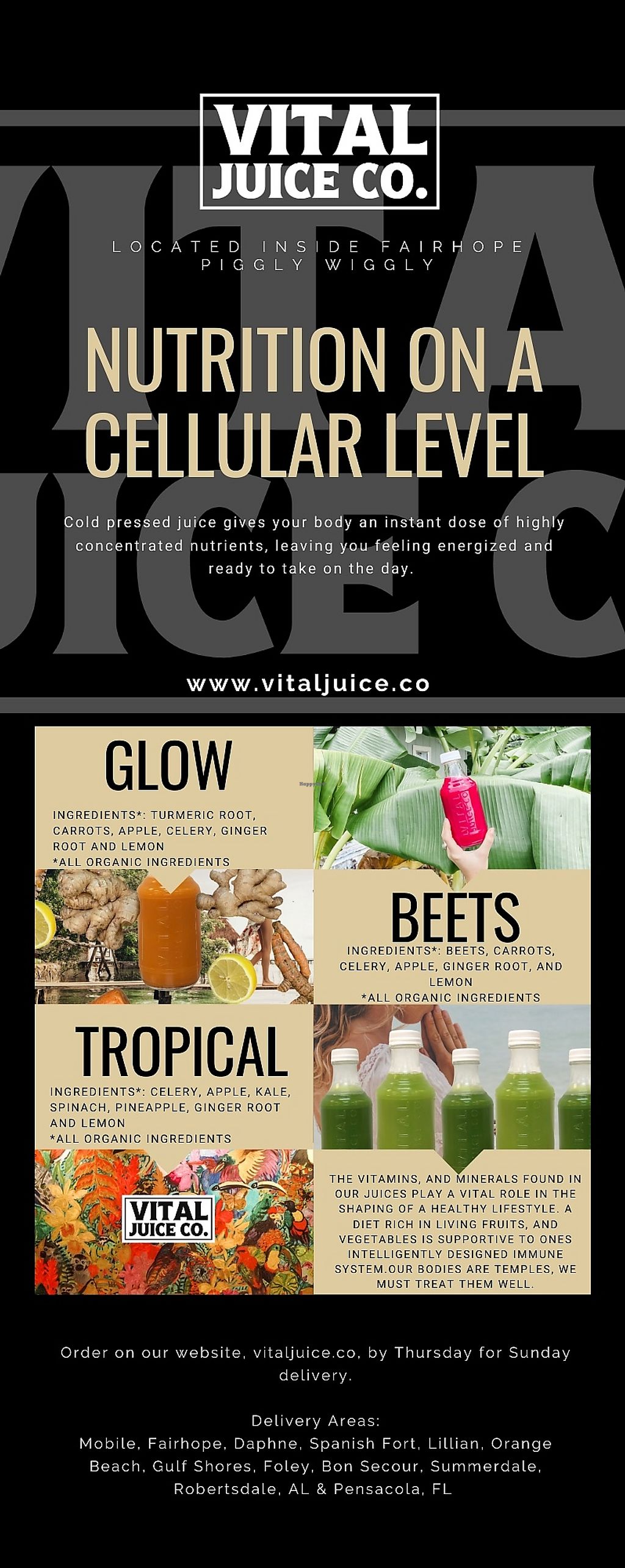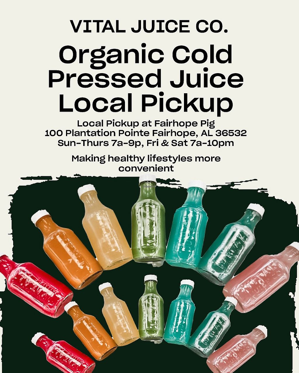 Grab-n-go case of the Vital Juice Co located inside the Piggly Wiggly super market. Has cold-pressed juices, lemonades, immunity shots, and vegan “power snacks” made from dates. Open Mon-Thu 7:00am-9:00pm, Fri-Sat 7:00am-10:00pm, Sun 7:00am-9:00pm.
