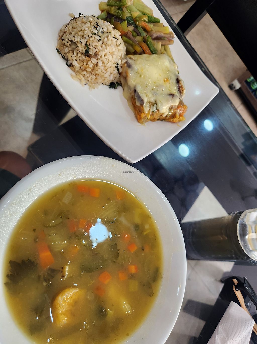 Had the all-vegan lunch here, which was a soup and rice with vegetables, soy meat and fried plantain. The staff was very friendly and the price of the lunch was pretty cheap! Great option to have.