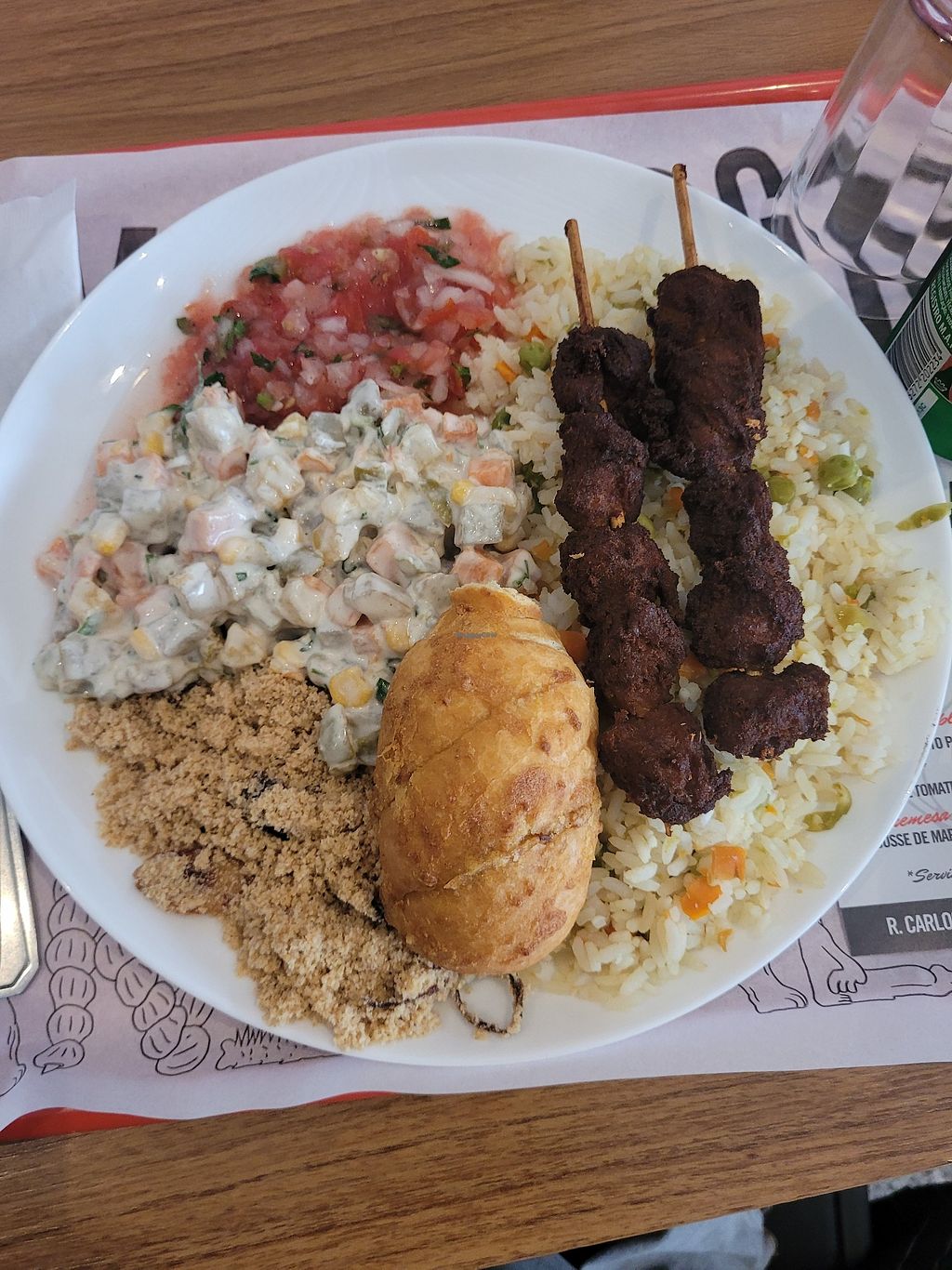 A melhor coxinha (tofu e alho poró). Espetinho xixo é perfeito e o churrasquinho de sábado é muito bom também.