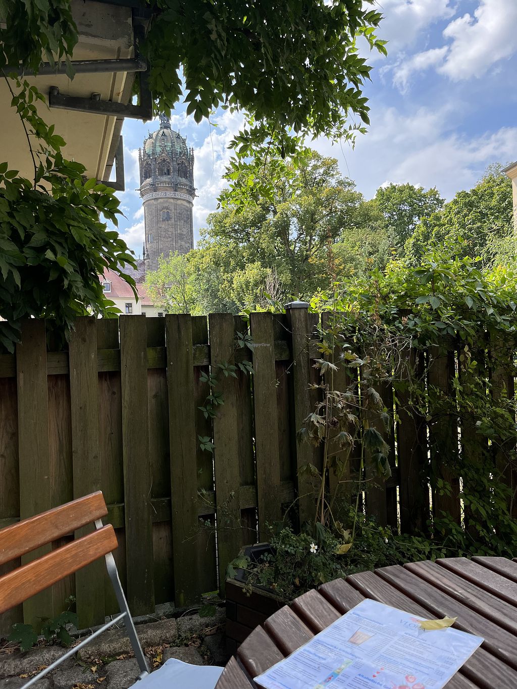 An all-vegan cafeteria. Serves cakes, pies and tarts. Has a lunch menu on workdays, breakfast on weekends, snacks in the afternoon. Drinks include made-in-house smoothies, coffees, teas and hot chocolates. Courtyard with direct views of the castle church in Wittenberg. Reported closed November 2022.
