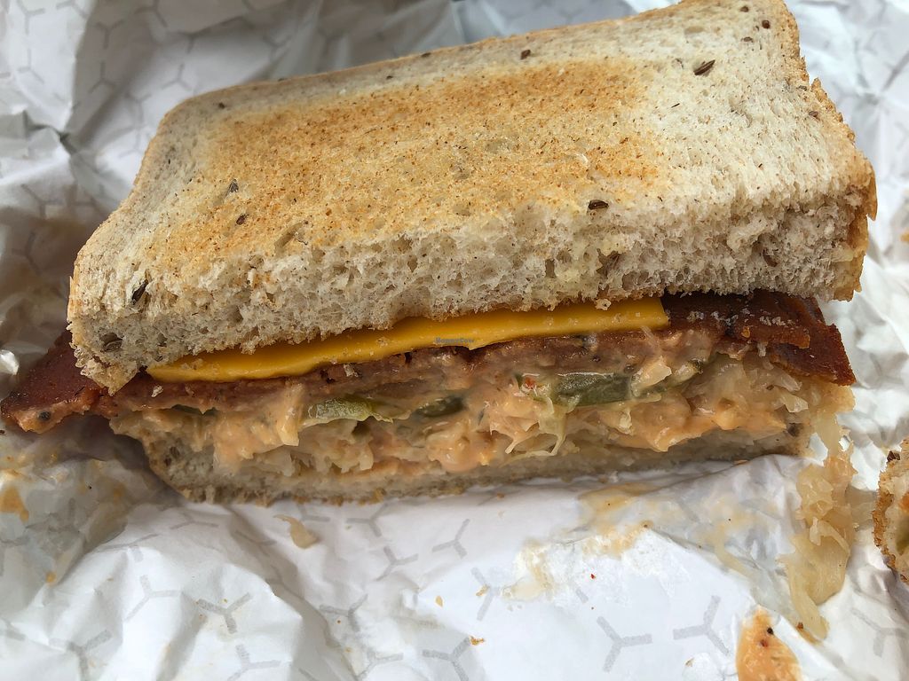Love this little deli that offers awesome vegan versions of classics. My non vegan super picky son loved the chicken parm (he loved it and would get it again) and my Reuben, loaded with deliciousness, was the best I’ve had. While I waited, and not very long, I picked up a few vegan bodega items too - vegan pesto, chocolate bars, cookies. The menu is extensive, and dessert looked amazing. Super nice staff. Well priced. Found nearby parking. Did I already say I love this place? Definitely worth a visit.