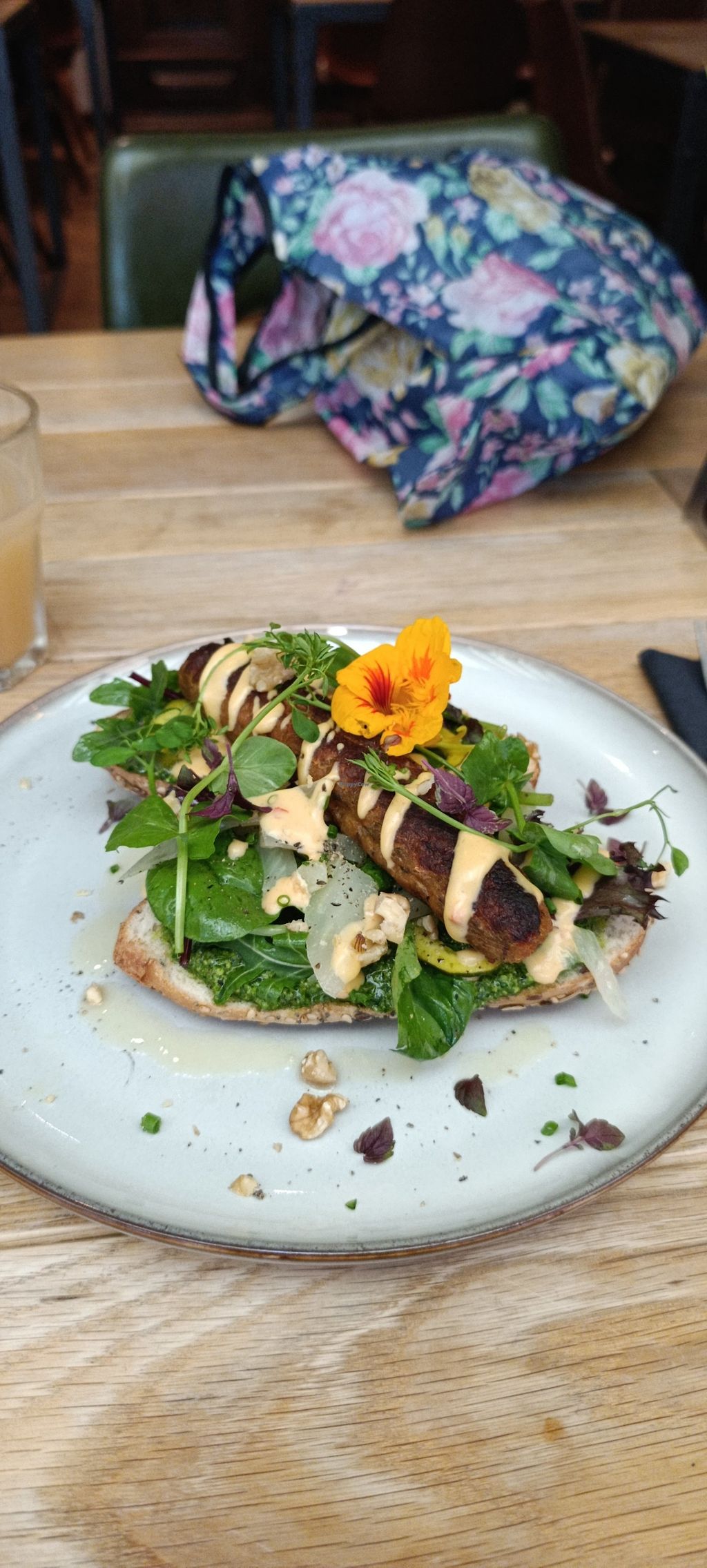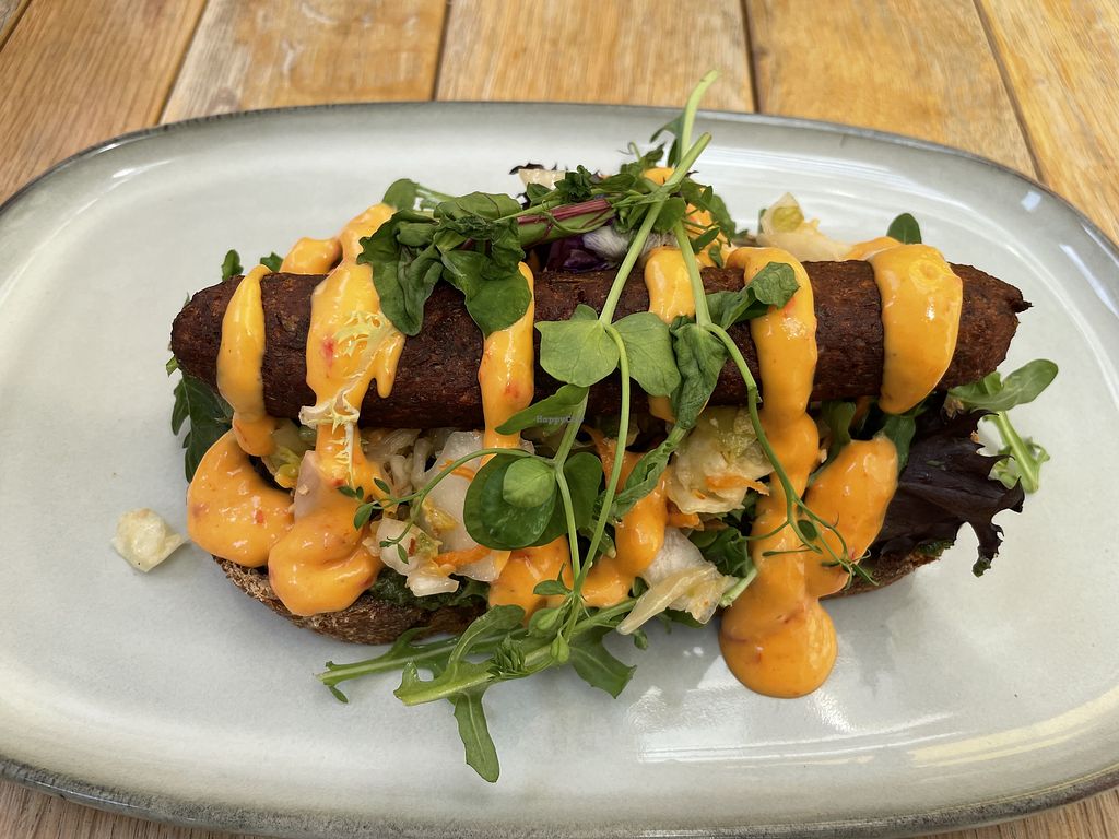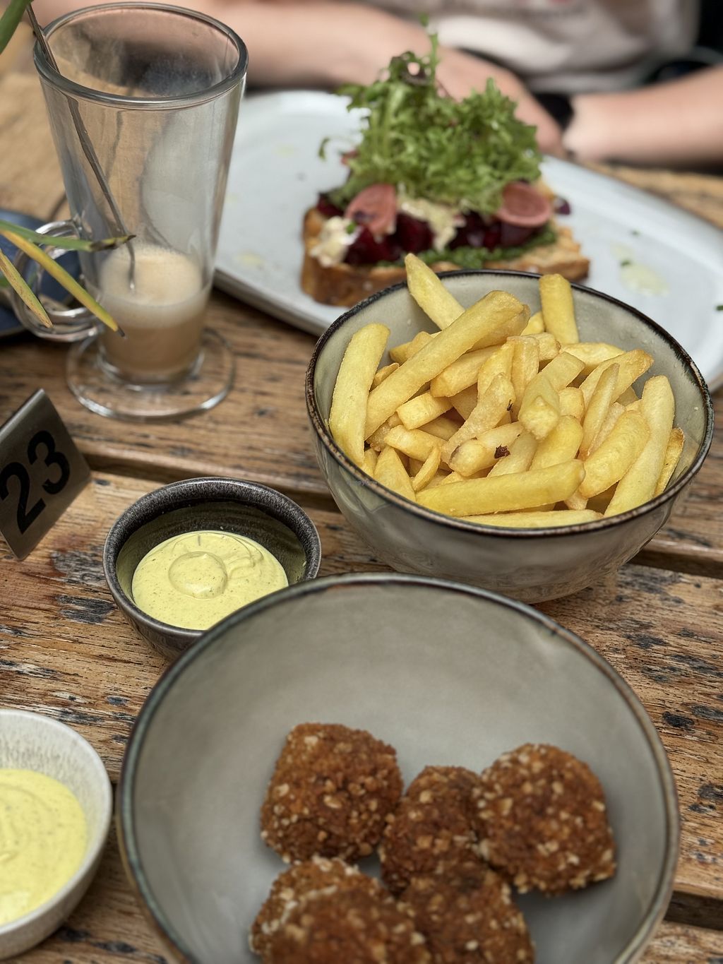 Oesterzwamkroketten on sourdough bread with a herbal creme: tasty