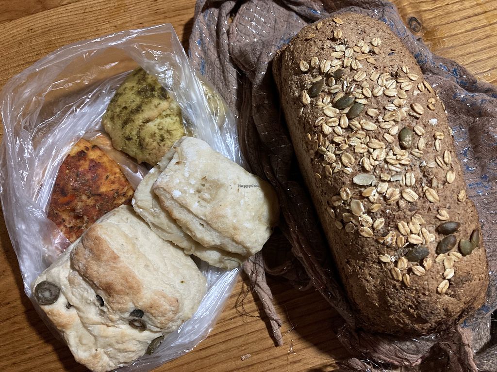 The owner speaks a little German, but no English. Almost all the breads were vegan. But he didn't have any sandwiches or pastries. We had a small tomato bread and a herb bread. Unfortunately, it wasn't as tasty as expected.