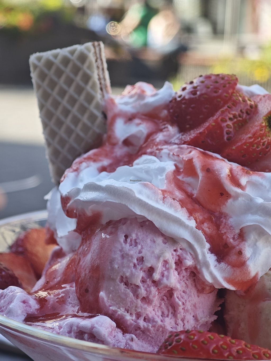 Man bekommt fast alle Eisbecher in vegan, nicht nur ein paar Fruchtsorten wie sonst üblich. Auch Heisse Waffeln mit allem schnickundschnack. Grosse Portionen. Der Eiscafé war einfach köstlich