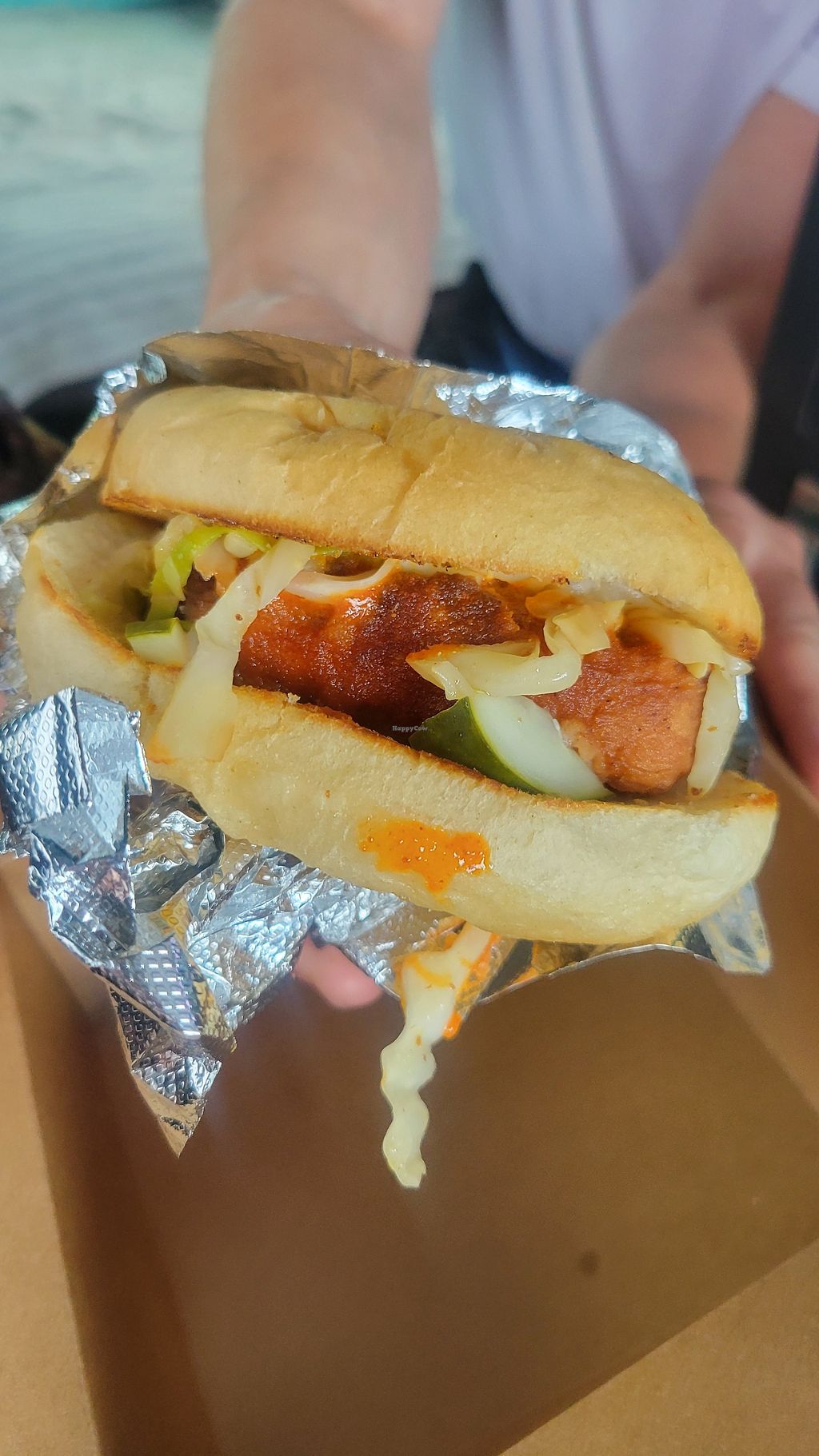 There are two vegan sandwiches in the standard menu, plus one breakfast sandwich on the brunch menu. We ordered the tempeh sloppy joe and smokin' hot tofu sandwiches. The sloppy joe was indeed VERY sloppy but had an awesome flavor and texture... full on summer camp nostalgia! The hot tofu was indeed HOT and too spicy for me, but the flavor was awesome and again, great texture. I really appreciated the creativity and well-executed use of tempeh and tofu instead of relying on processed plant-based meat. Some outdoor seating and limited parking.