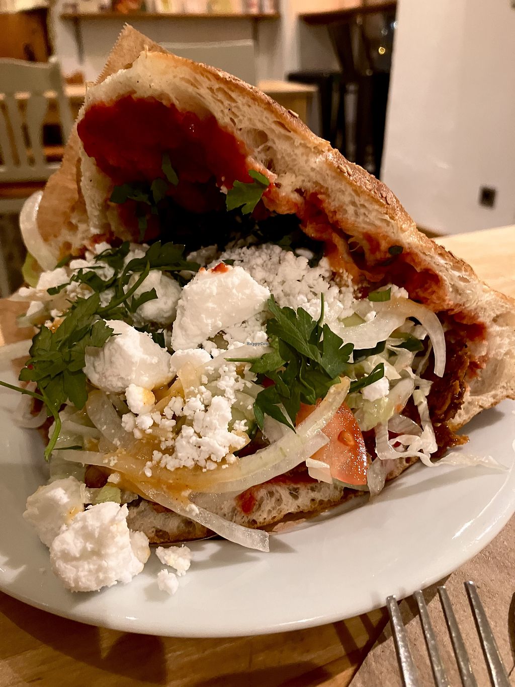 Read moreI added vegan feta to the dish along with fresh salad. It was so big you can’t get your mouth around it. The bread is was in was so so good.