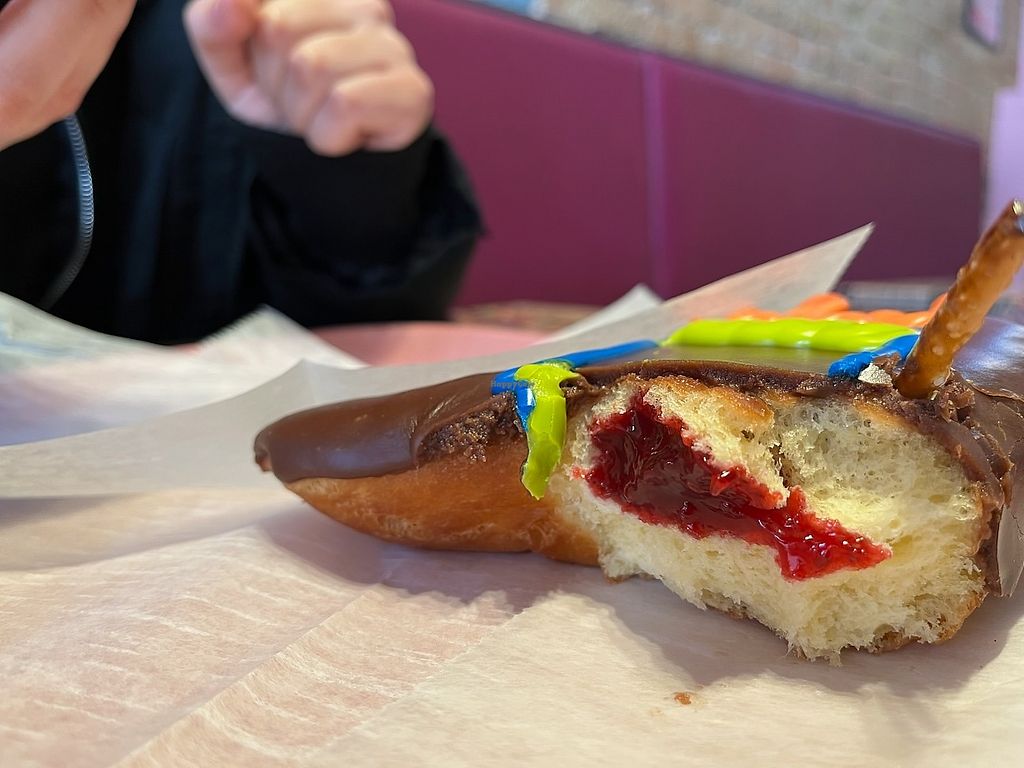 Read morePros: Decadent flavor and the perfect mouth feel!, Vegan doughnuts from $1.50-$5 each , Cream filling is to die for!