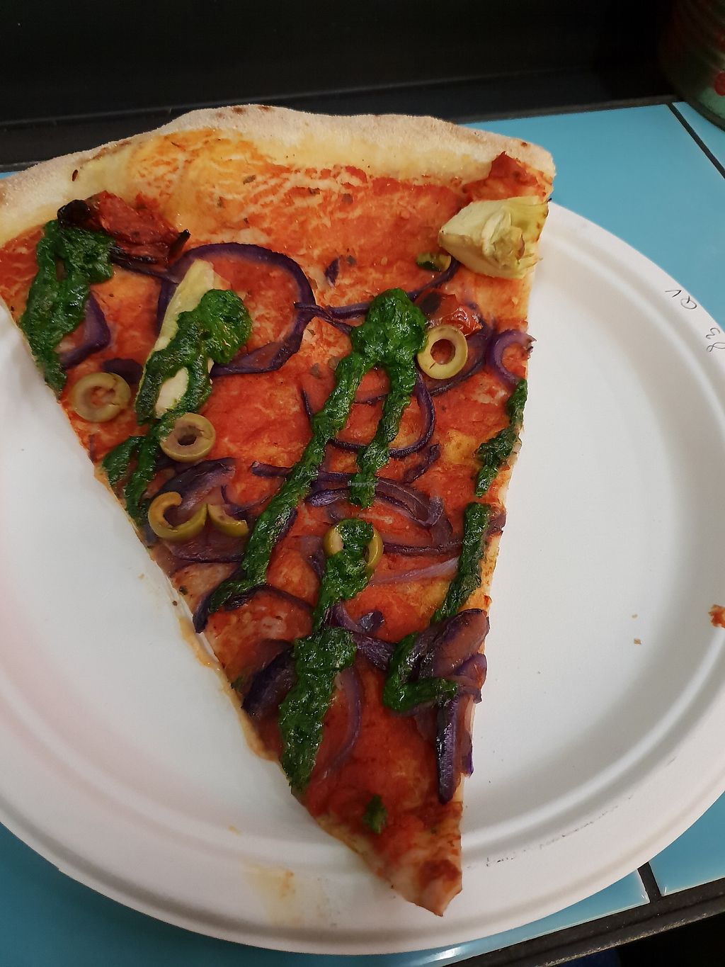 Read moreI've been twice, and only tried "queen vegan". There is no vegan cheese option, which always puts me off when looking for a nice pizza but, you won't even miss it with this one. The tomato sauce is savoury and abundant, with well balance toppings (artichoke, olives, onion). The base is crunchy without being dry or burnt.