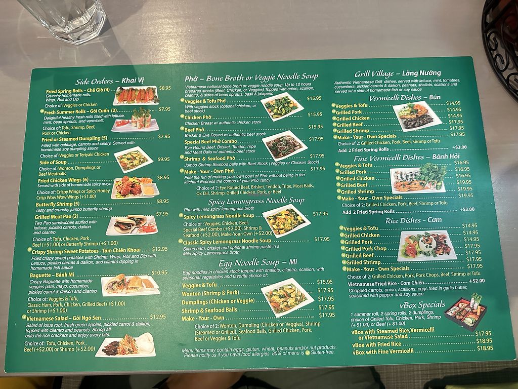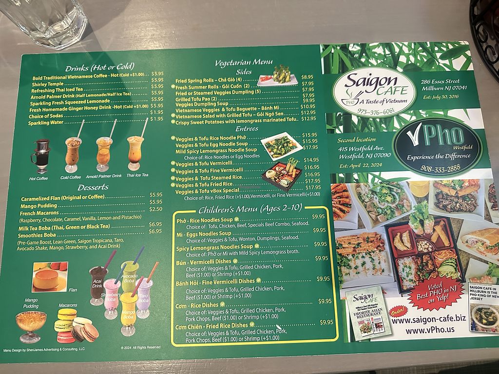 This is a sister restaurant to nearby Saigon Cafe in Millburn. It’s a cozy location with a pleasant seating area, including outdoor options and large booths. Like Saigon Cafe, the vegetarian menu is clearly marked (the same dishes are listed on the general menu, but the vegetarian selections are neatly organized so you don’t have to sort through everything). The lemongrass veggie broth was very tasty! The box set is a nice option for trying different items across the menu. The service was direct and attentive - I think they are accustomed to diners who aren’t as familiar with Vietnamese food and so they took the initiative to explain how best to enjoy each dish😄