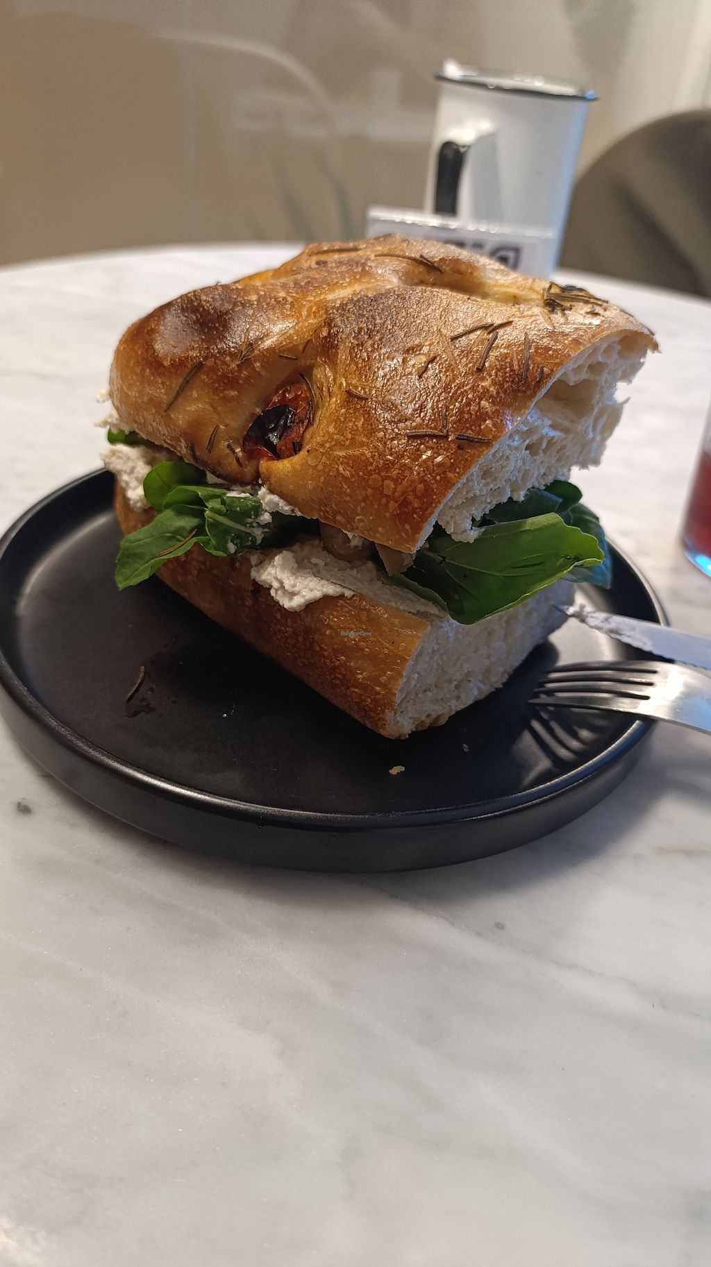 I loved it! The green space outside is just great. I was warmly welcomed and got some hummus and focaccia, as a free dip. I ordered the tofu salad. Fantastic! The tofu is deep-fried, but the salad is quite light. For dessert, I had the brownie, made with beetroot, and two ice cream scoops (it comes with one, but I added one more). The brownie was perfect (you don't notice the beetroot taste at all), but the ice cream (almond based, not very sweet), was not creamy enough for my taste. But it's a great place overall!