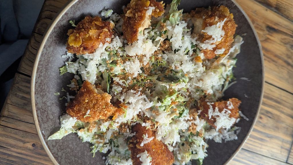 cauliflower wings + caesar salad