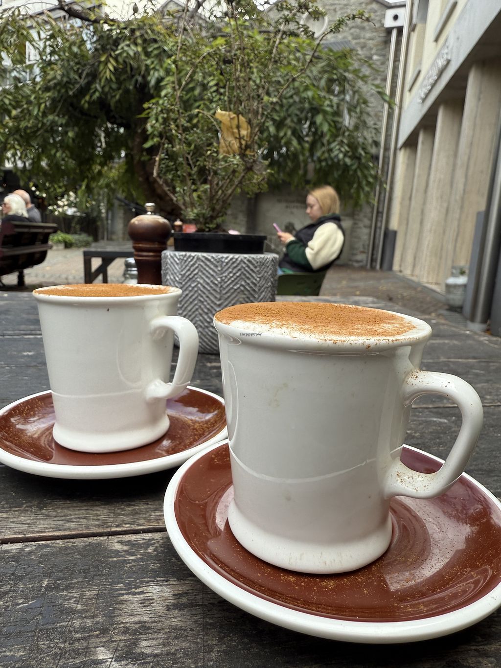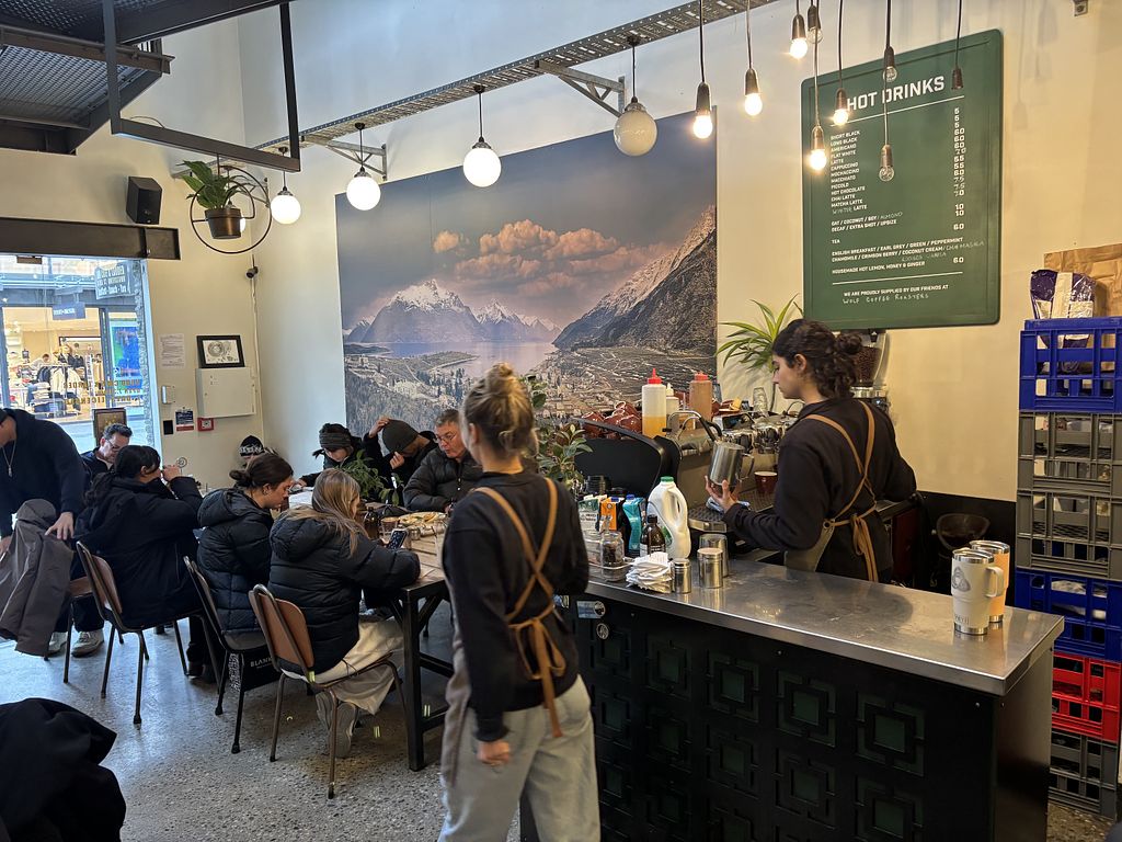 Got an Oat Latte (they charge extra for milk alts) and their plant based raw Snickers bar. Coffee was really good and the bar was tasty, a little bit pricey for the size, but expected for Queenstown. They have inside and outside seating facing the lake, and can get really busy.