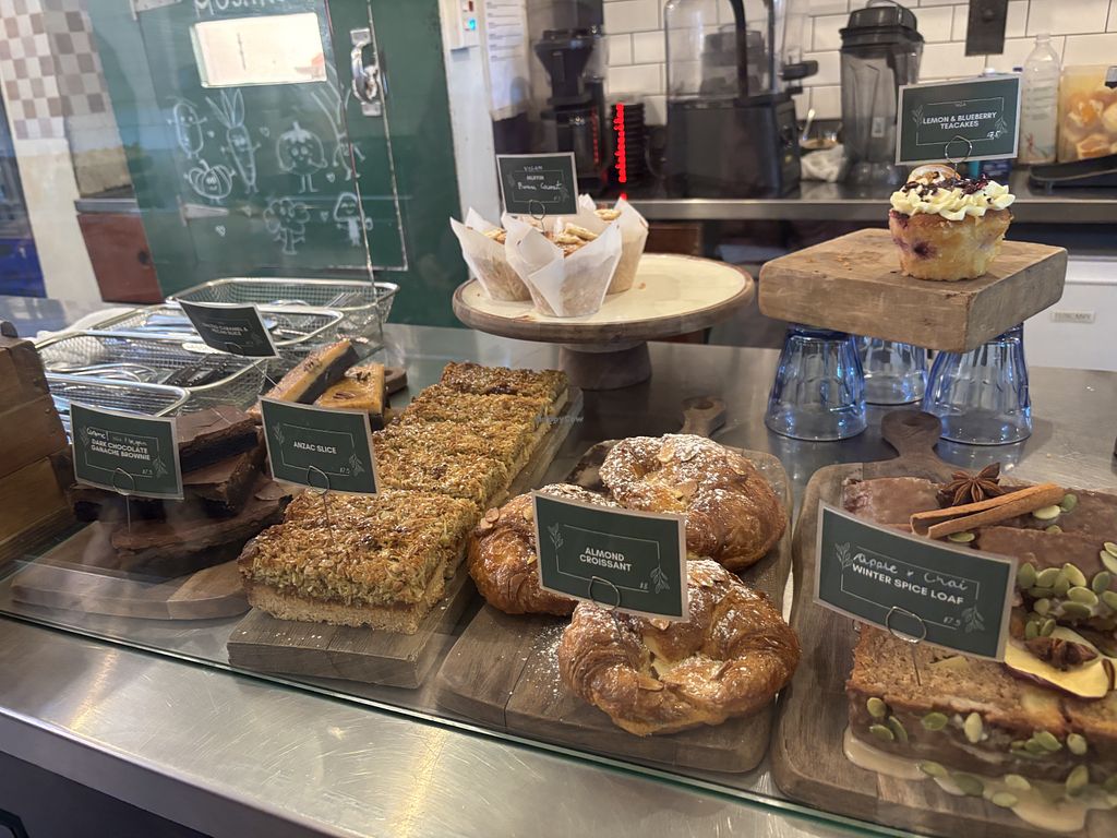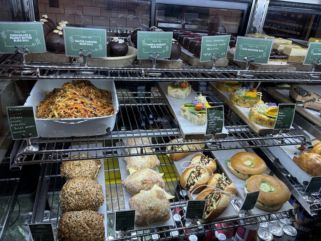 Abit small and cramped inside however they have a whole shelf of vegan cakes. Chocolate coated chocolate and raspberry mouse, snickers and ginger cheesecake bars. That kinda thing. Great location and pricing not too bad.