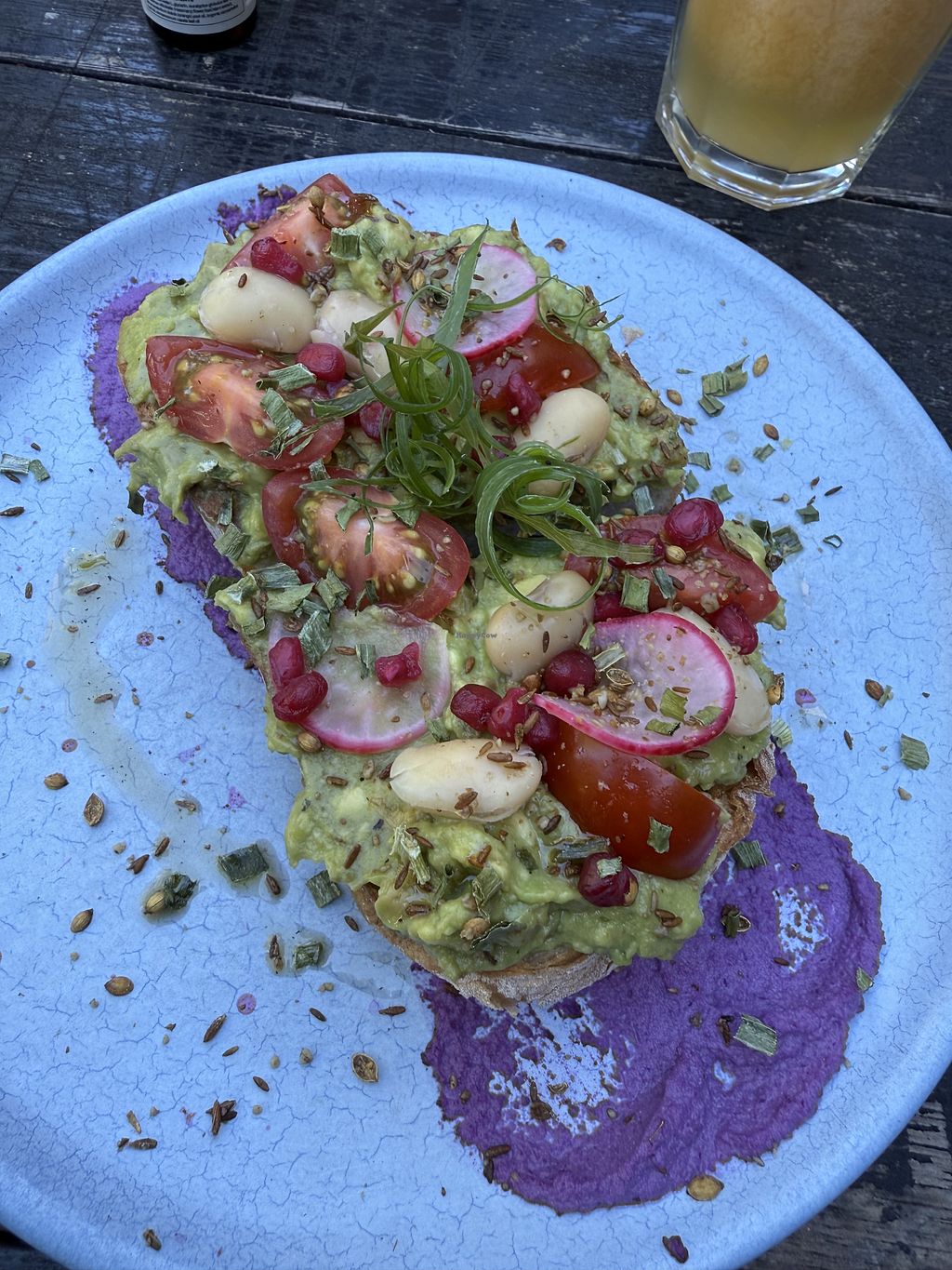 After a quick google search this popped up. The good reviews were spot on. Great menu options and outdoor seating by the water make it a perfect lunch spot. Bean burrito and the mushroom arancini were great. A good selection of fresh juices topped off a perfect lunch.