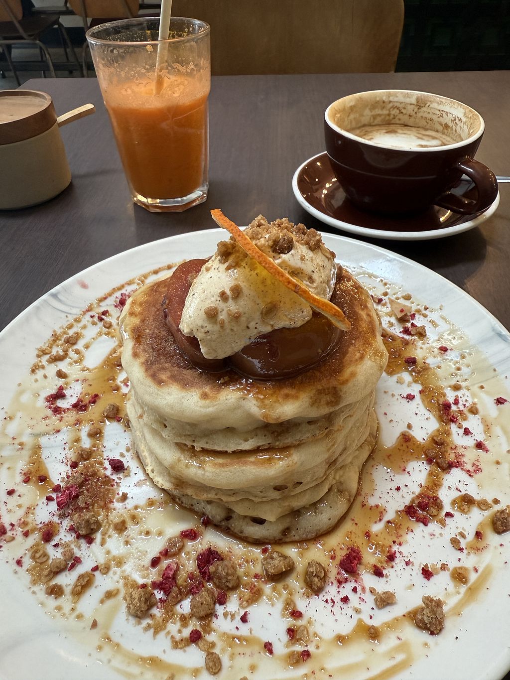 🥞 were delish and the juice was very good. Juice felt cheap compared to everything else in this city!